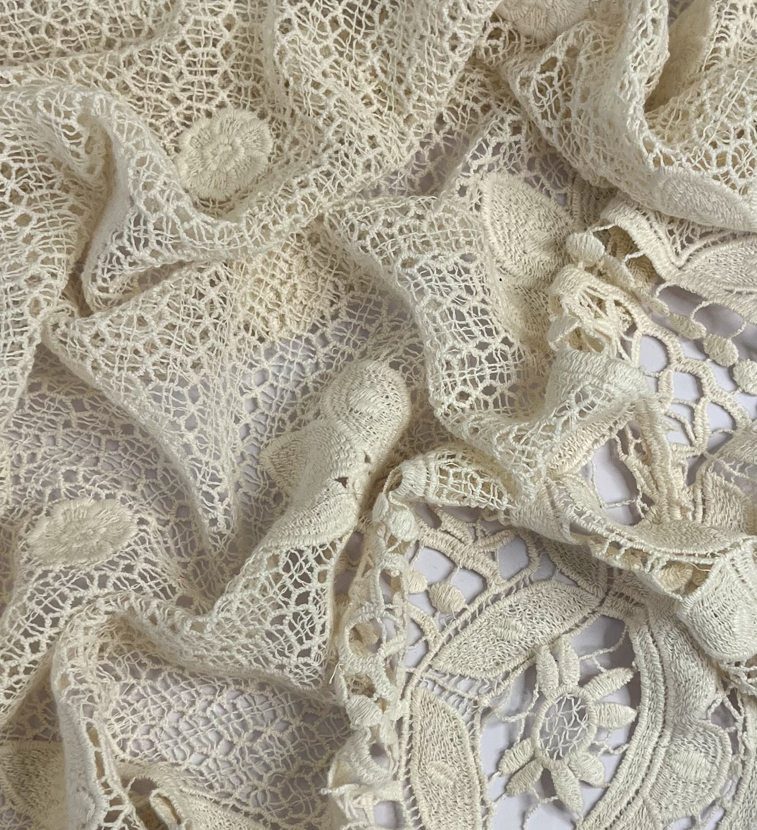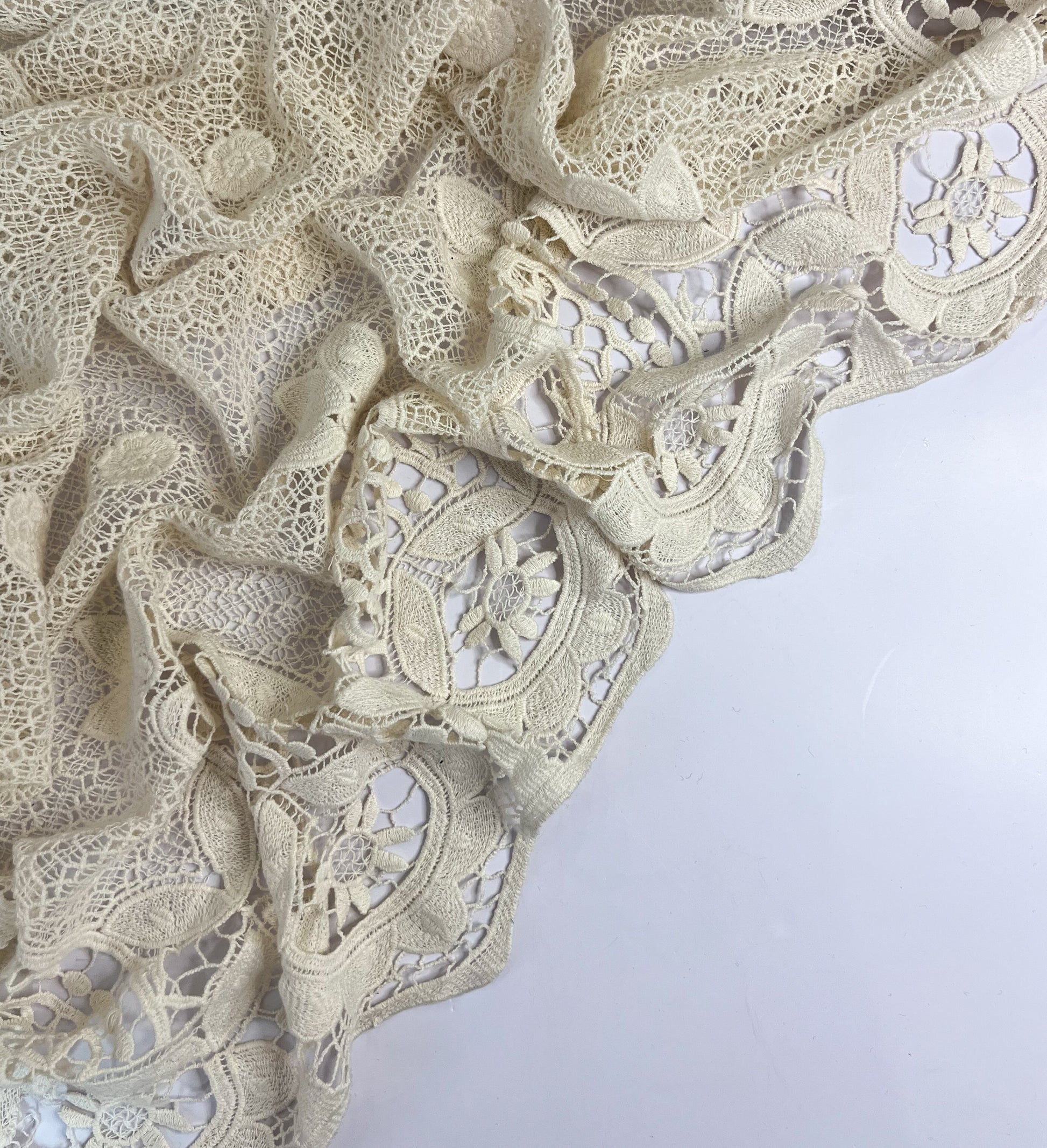 Laissez libre cours à votre créativité avec cette somptueuse guipure en coton, finement tissée et ornée de magnifiques motifs floraux en relief.