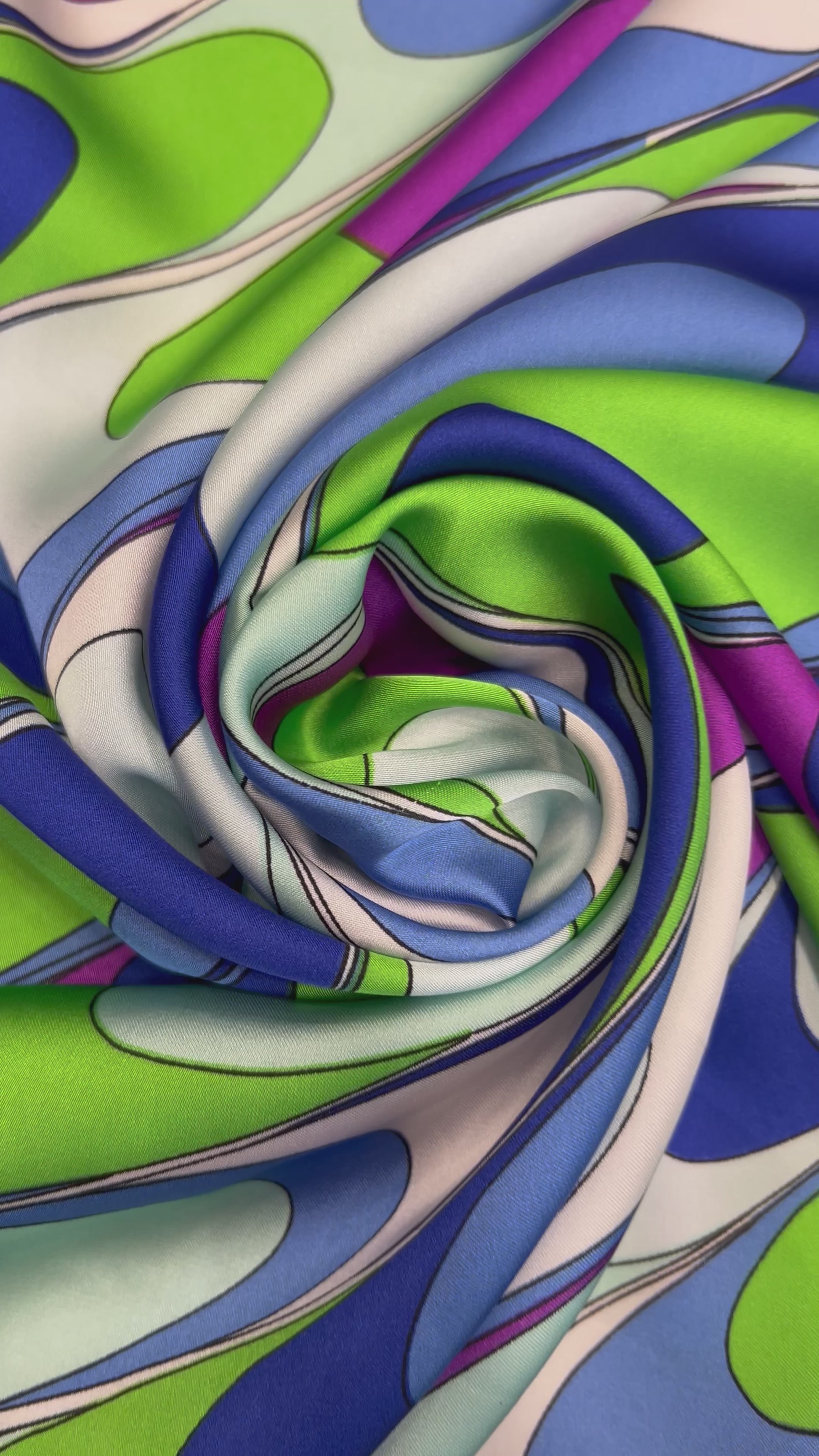 Apportez une touche de raffinement à vos créations avec notre satin imprimé, magnifiquement orné de motifs arrondis disposés en diagonale. Ce tissu incarne l’élégance et la modernité, avec des couleurs parfaitement assorties qui créent une harmonie visuelle.