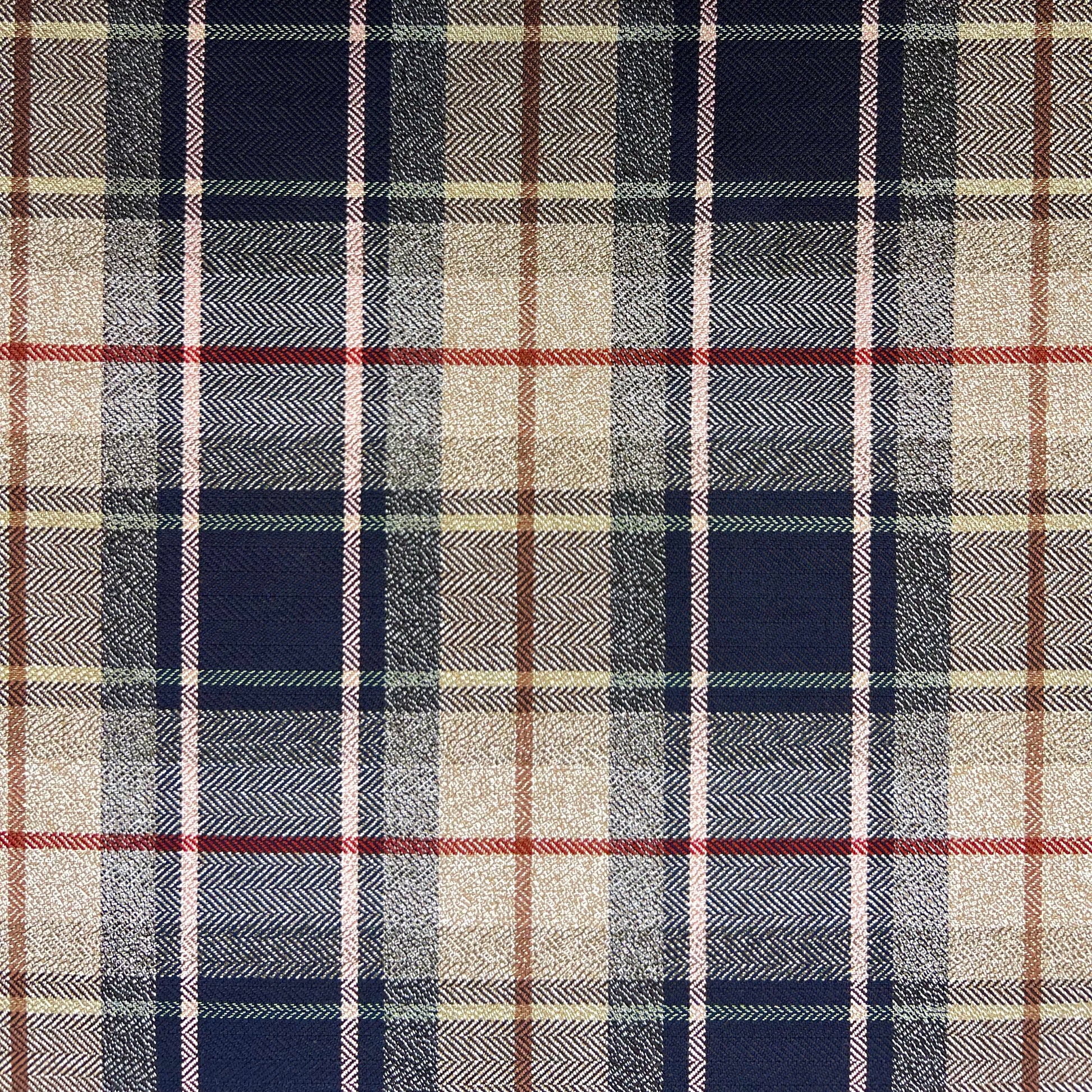 CORENTIN: Tissu tartan écossais beige/marine rayures bordeaux et roses