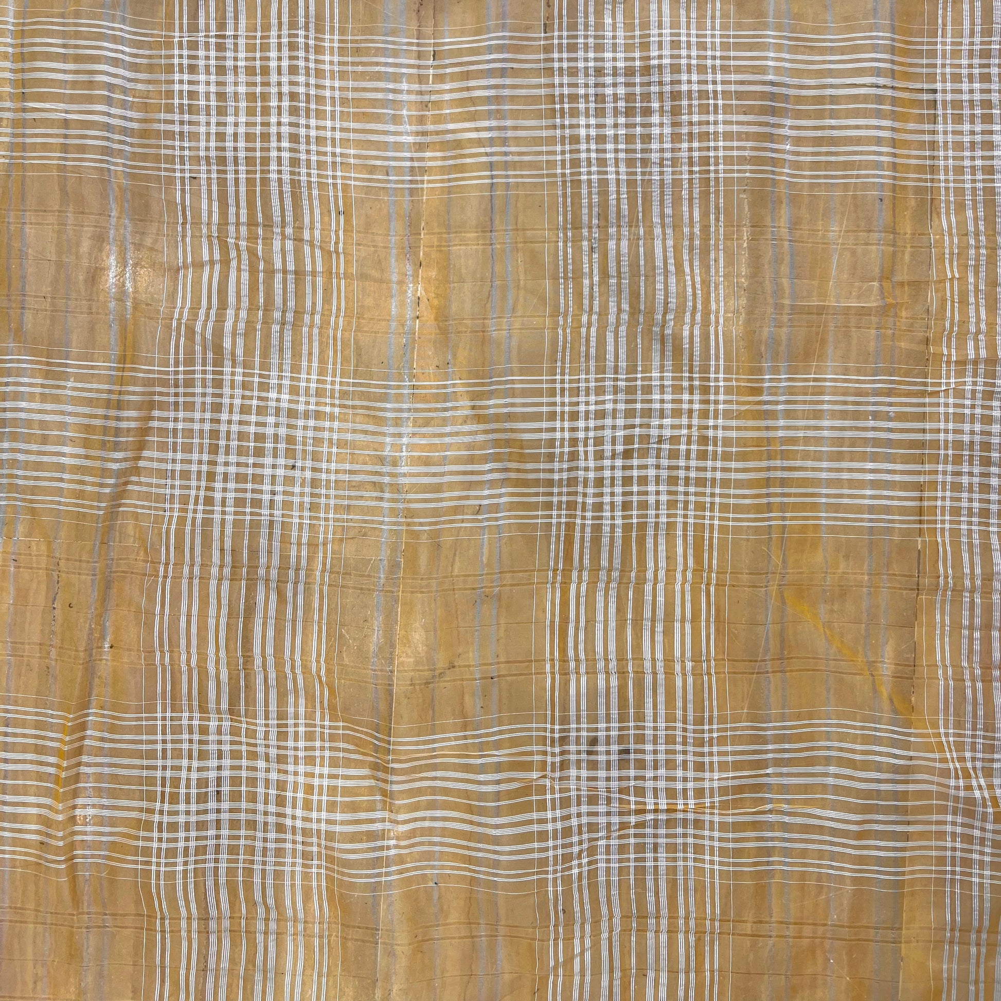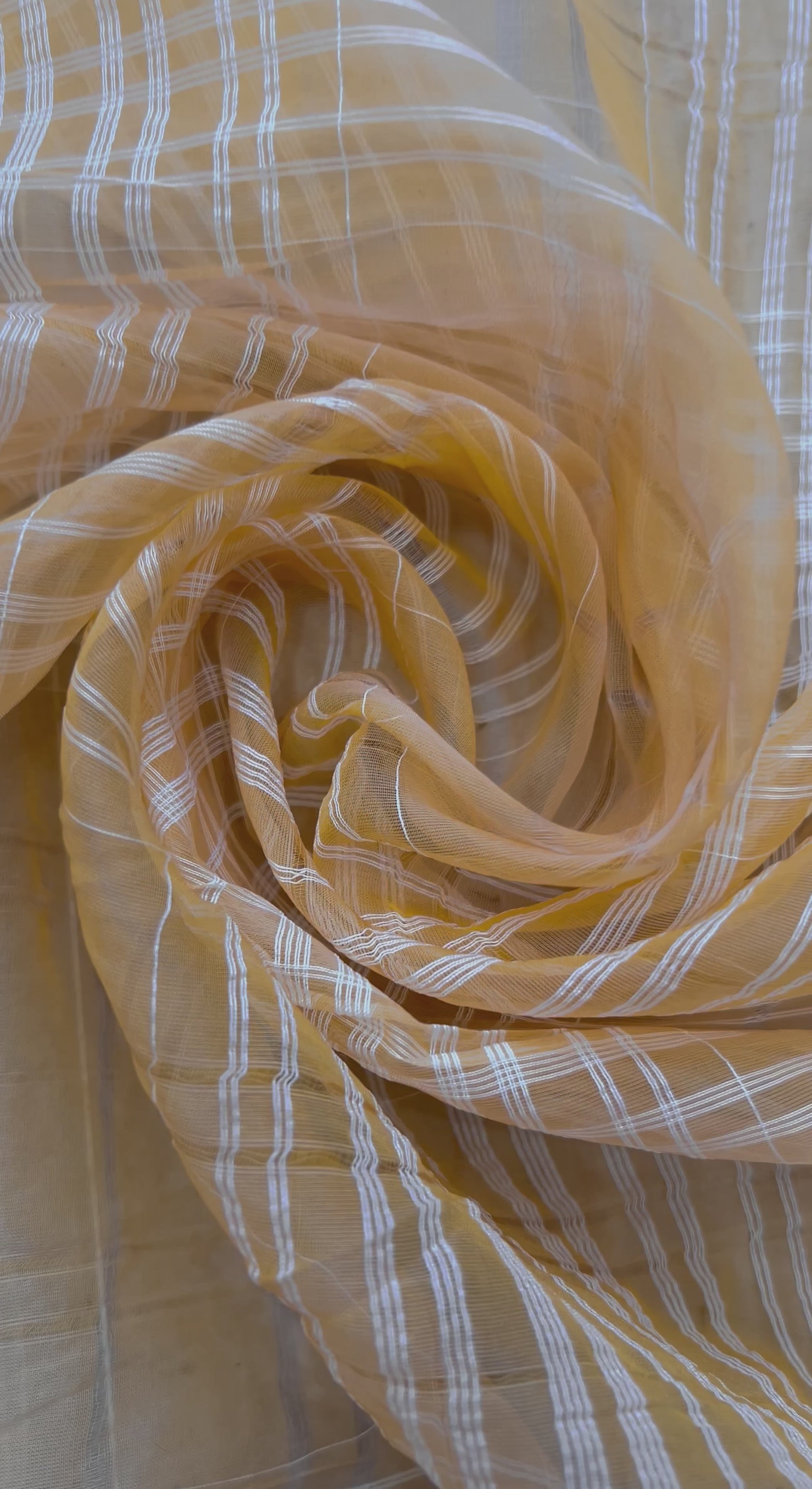 Découvrez la magie de notre organza de soie changeant, sublimé par des carreaux délicats ton abricot et blanc.