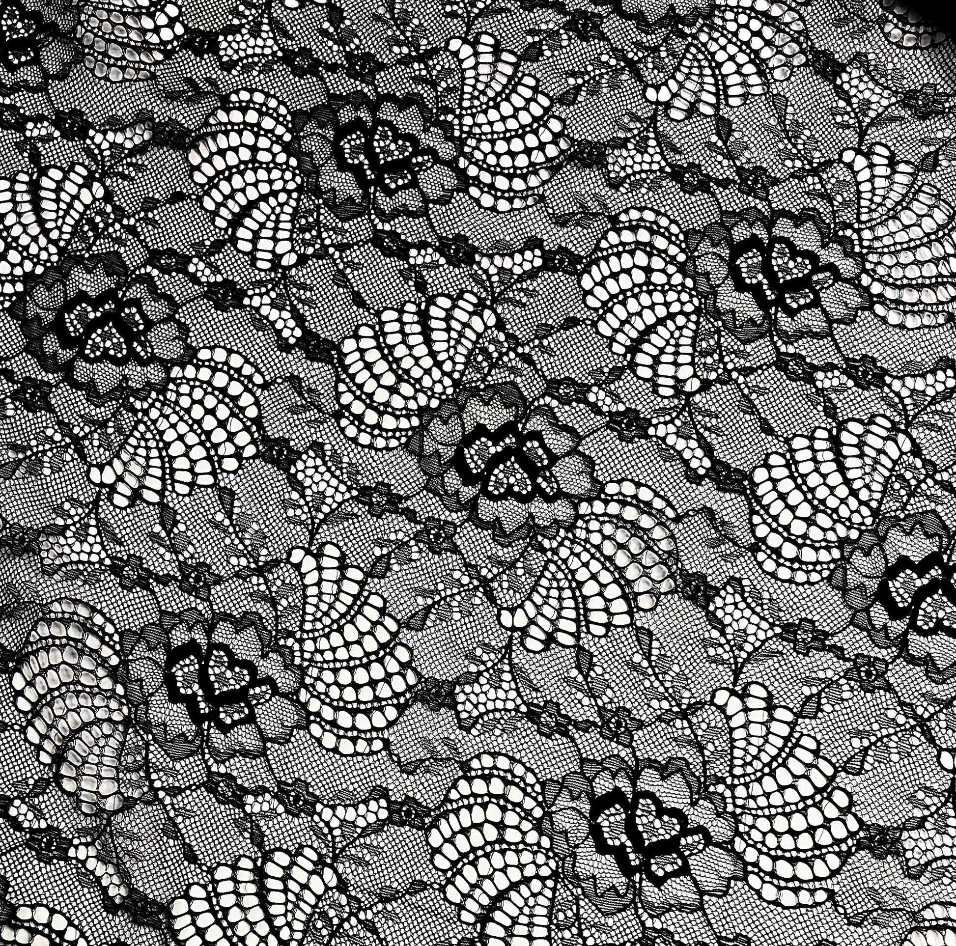 Plongez dans l'univers de notre Dentelle Florale Noire, un chef-d'œuvre de textile conçu pour ceux qui cherchent à ajouter une touche de sophistication et d'élégance à leurs créations.