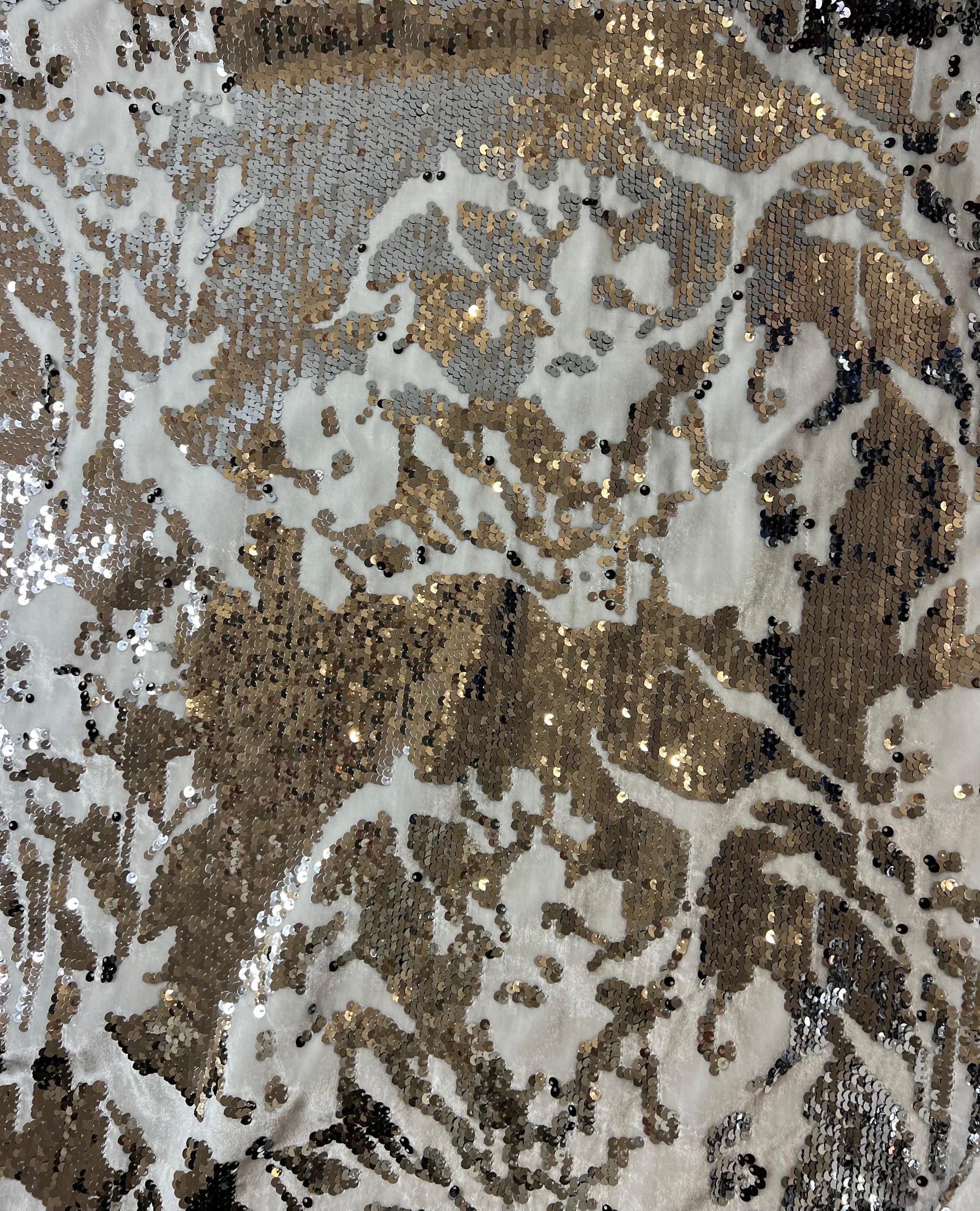 Découvrez le luxe ultime avec notre tissu GIORGIA : un velours somptueux rehaussé par une broderie artistique et des sequins étincelants.