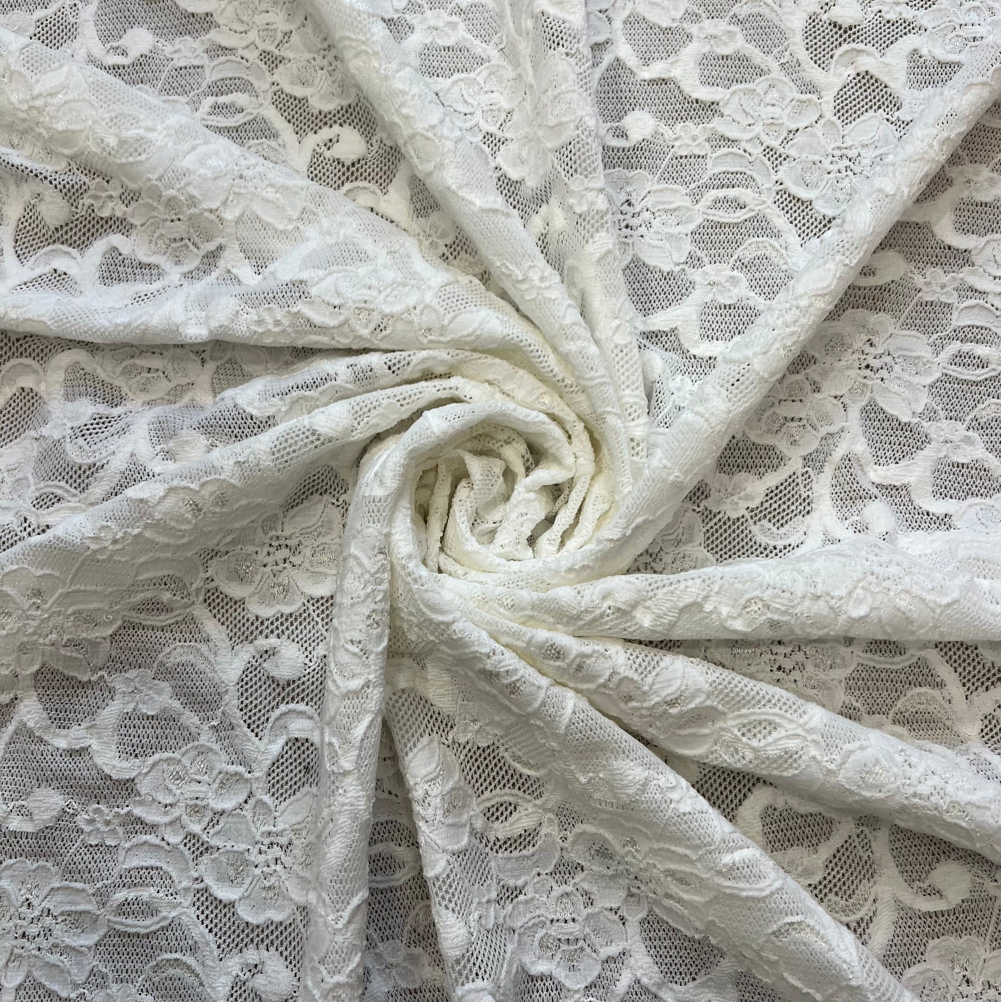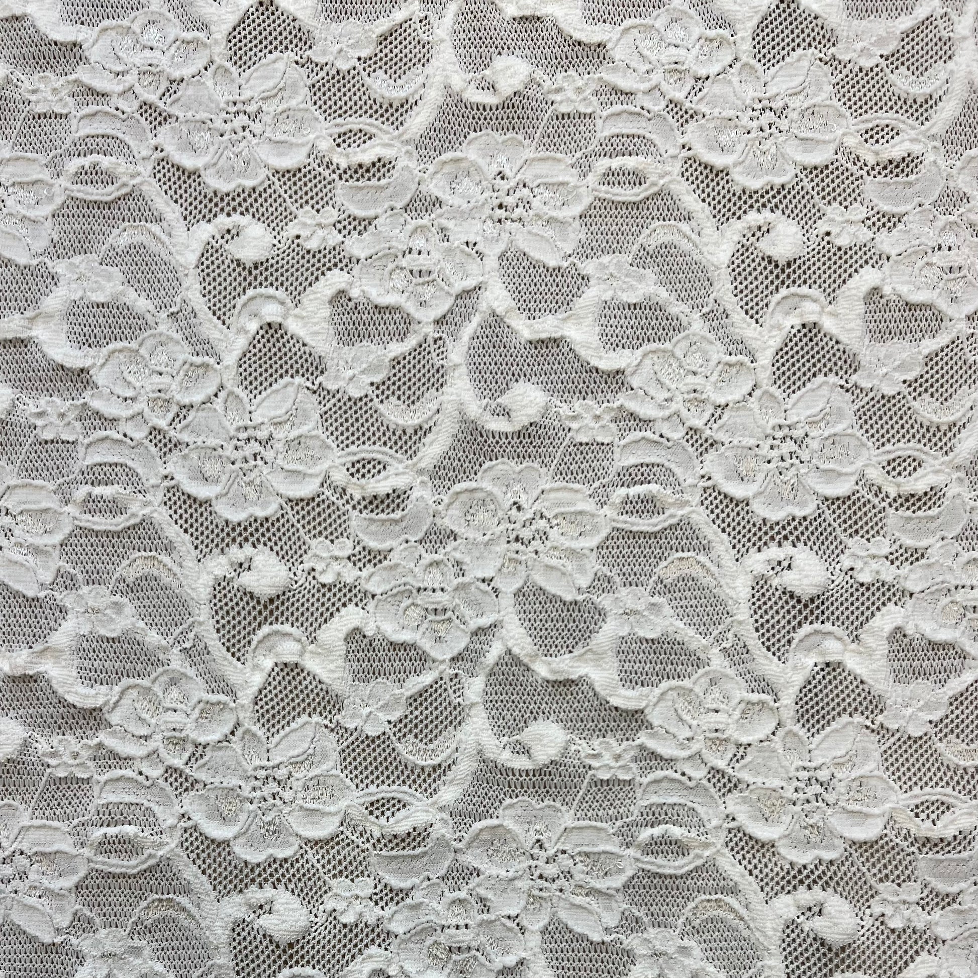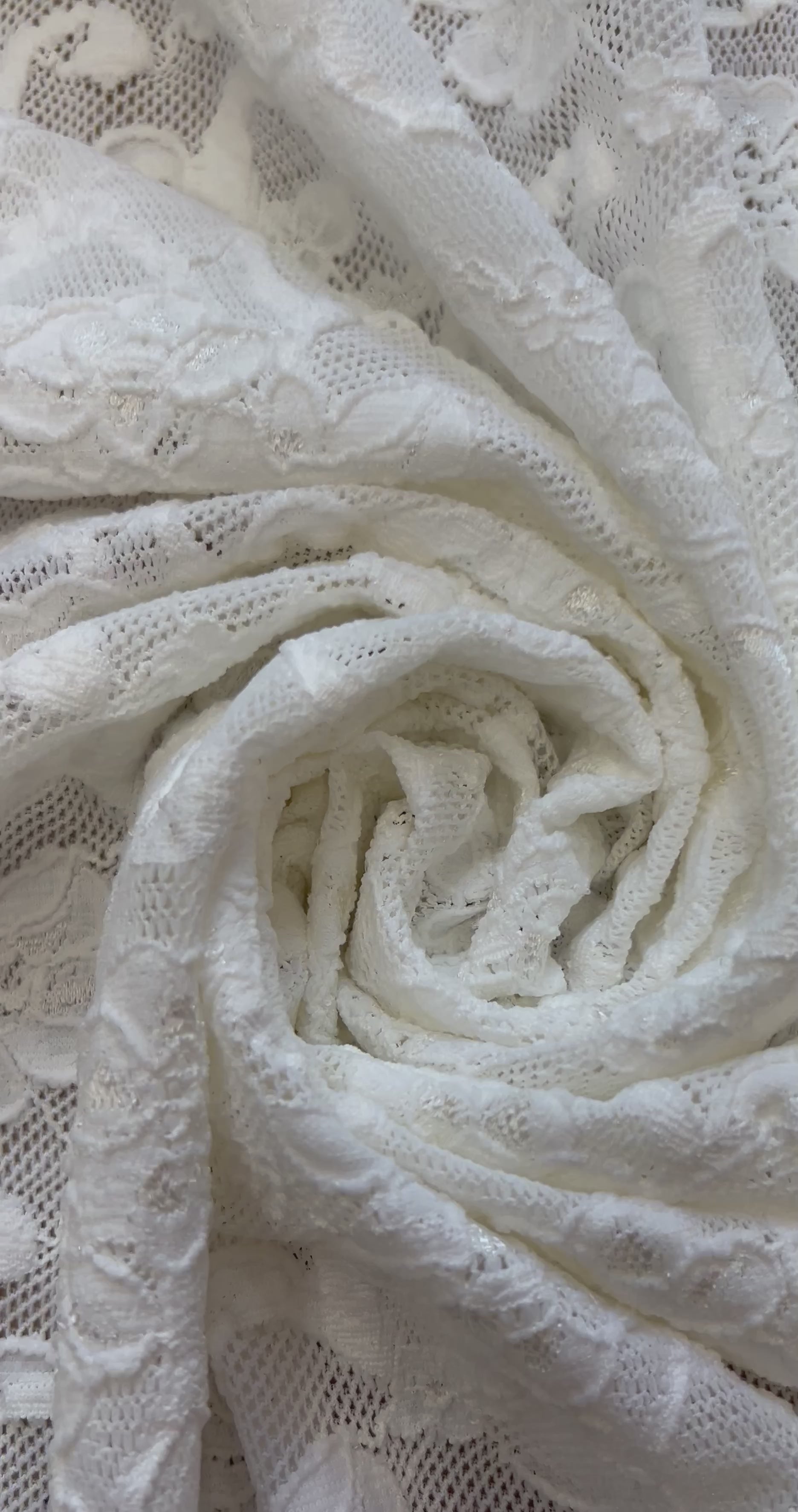 La dentelle en maille offre une légèreté et une fluidité remarquables, tout en conservant une structure solide grâce à son tissage soigné. La teinte écru, douce et naturelle, apporte une chaleur subtile qui rehausse le motif fleuri, rendant ce tissu idéal pour des robes de mariée, des tenues de cérémonie, ou des accessoires délicats.