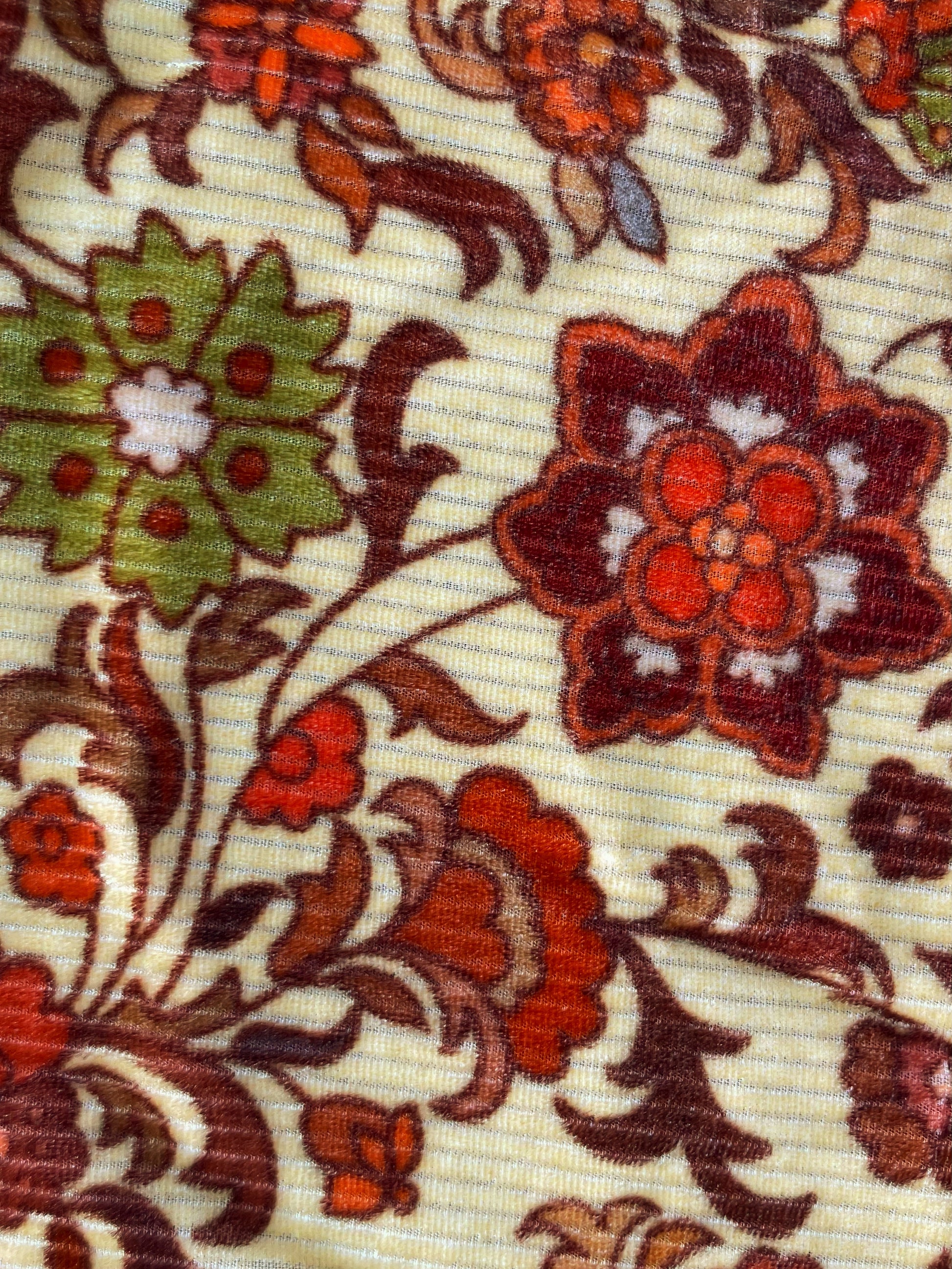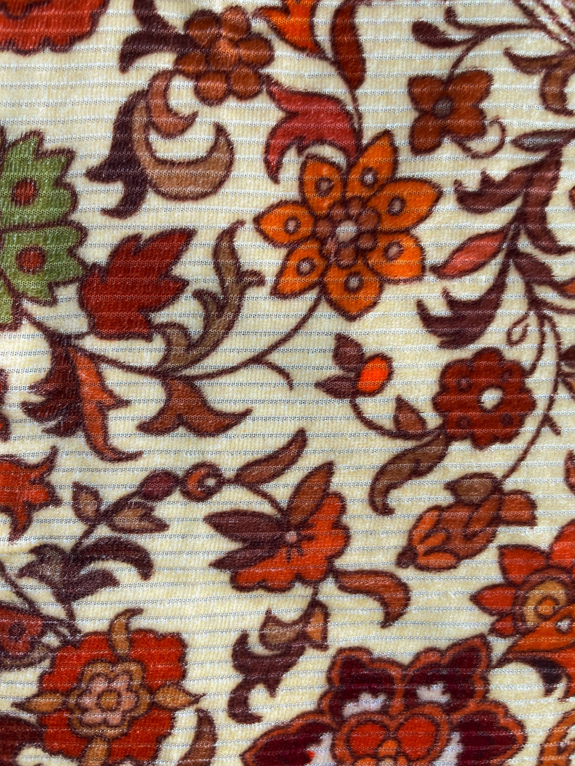 Ses motifs floraux vintage, délicatement imprimés sur le velours de coton, créent un relief doux et raffiné, apportant profondeur et sophistication à vos créations. La texture chaleureuse et veloutée du tissu offre un tombé structuré tout en restant confortable, idéale pour des pièces élégantes et stylées.