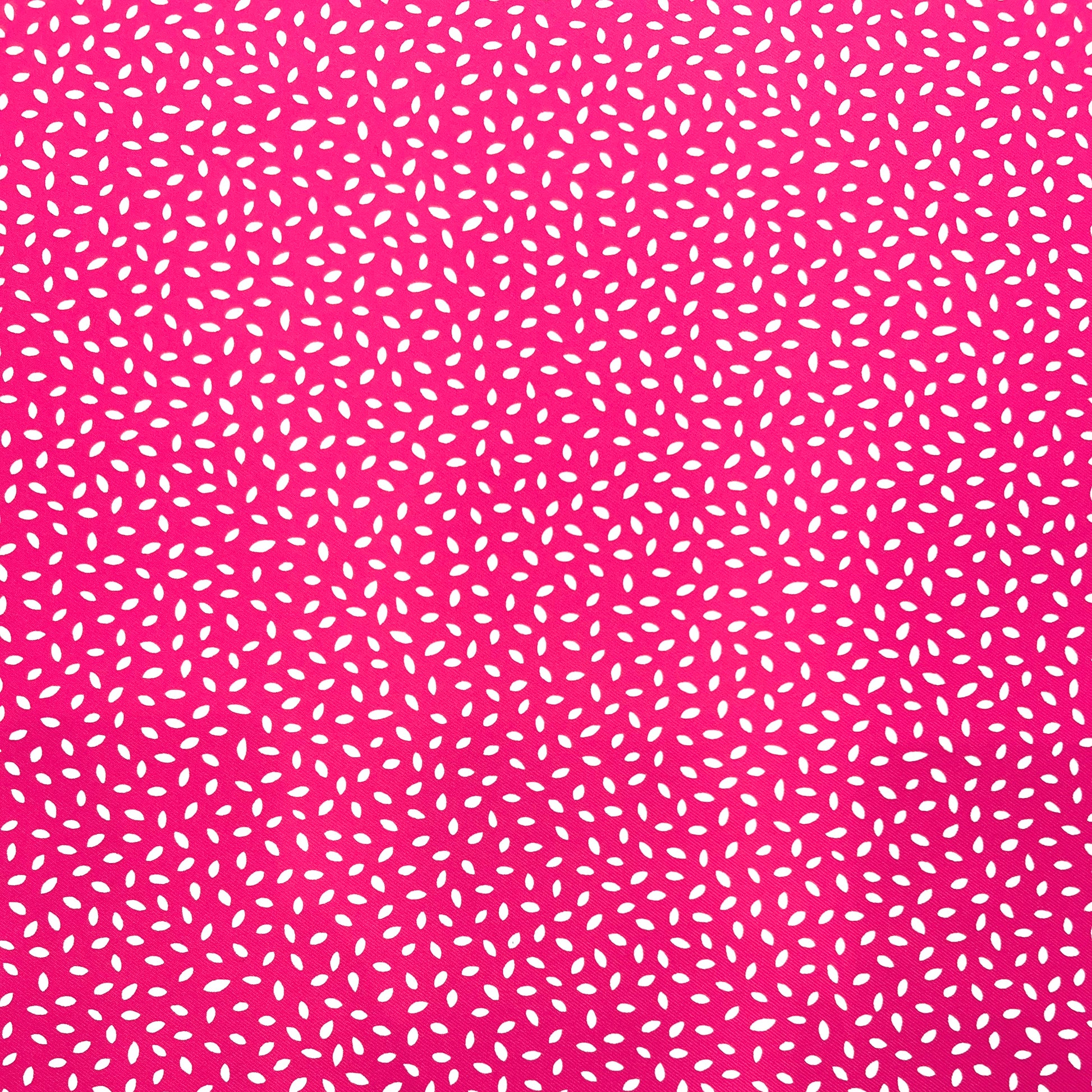 Le motif se compose de petits grains blancs, éparpillés uniformément sur toute la surface, créant un effet discret et harmonieux. Ce design subtil se marie parfaitement avec le fond rose vif pour un rendu visuel à la fois chic et pétillant.