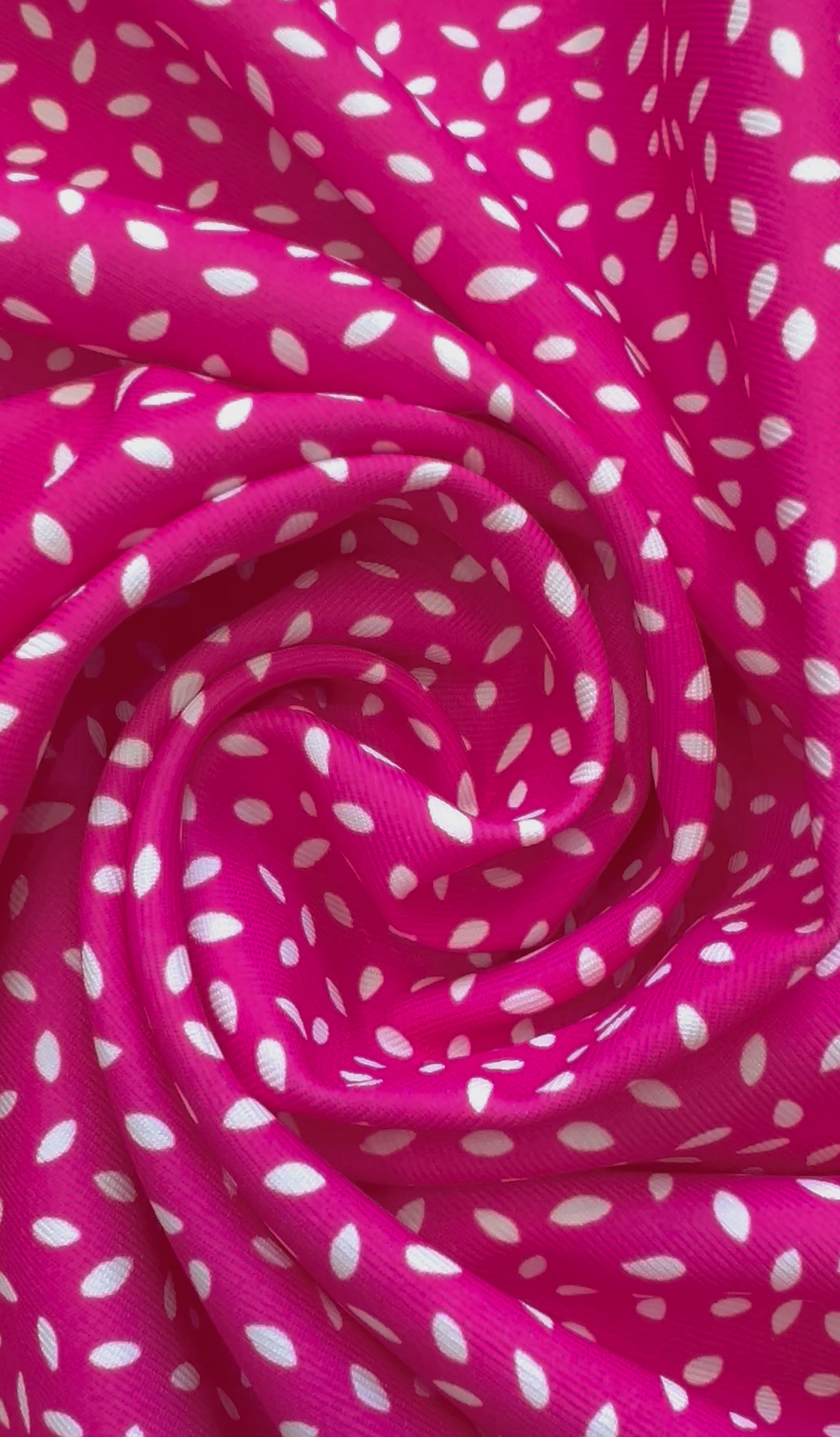 Découvrez la douceur et la polyvalence de cette toile sergé en polyester mat, habillée de petits motifs blancs sur un fond rose éclatant. Idéale pour des créations aussi bien élégantes que décontractées, cette toile combine robustesse et confort tout en offrant un design moderne et frais.