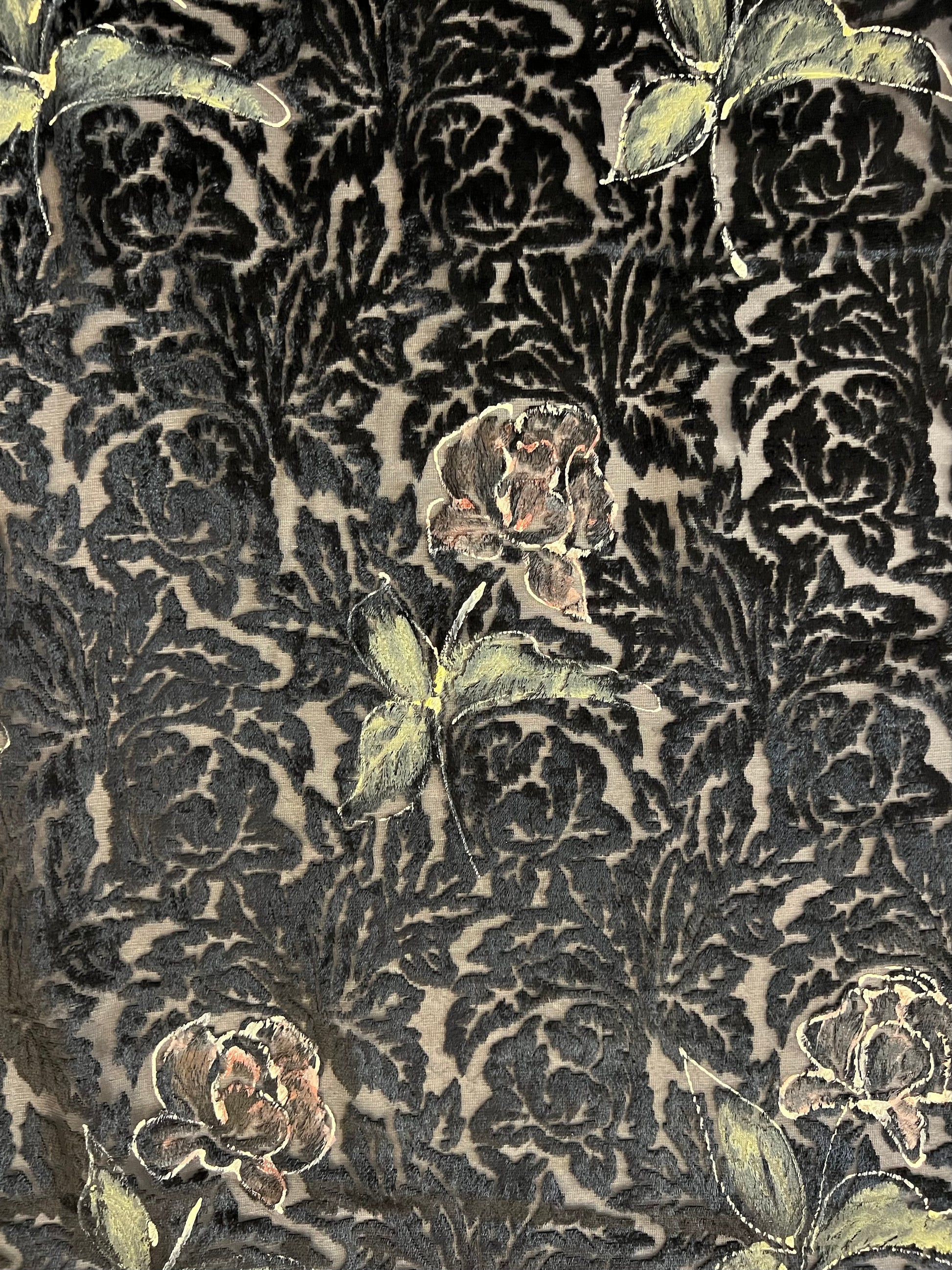 Découvrez l'élégance de notre velours dévoré fleuri peint à la main.