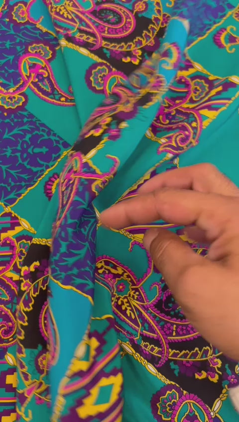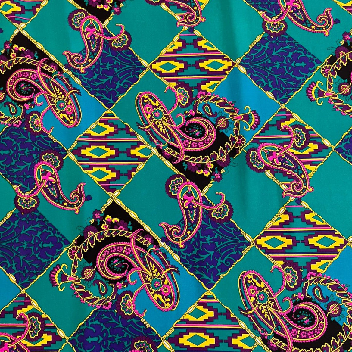 The lively and luminous shades of this colored silk evoke a sunny and joyful atmosphere. The whimsical patterns add a note of creativity and unique style, making each piece a true visual masterpiece.