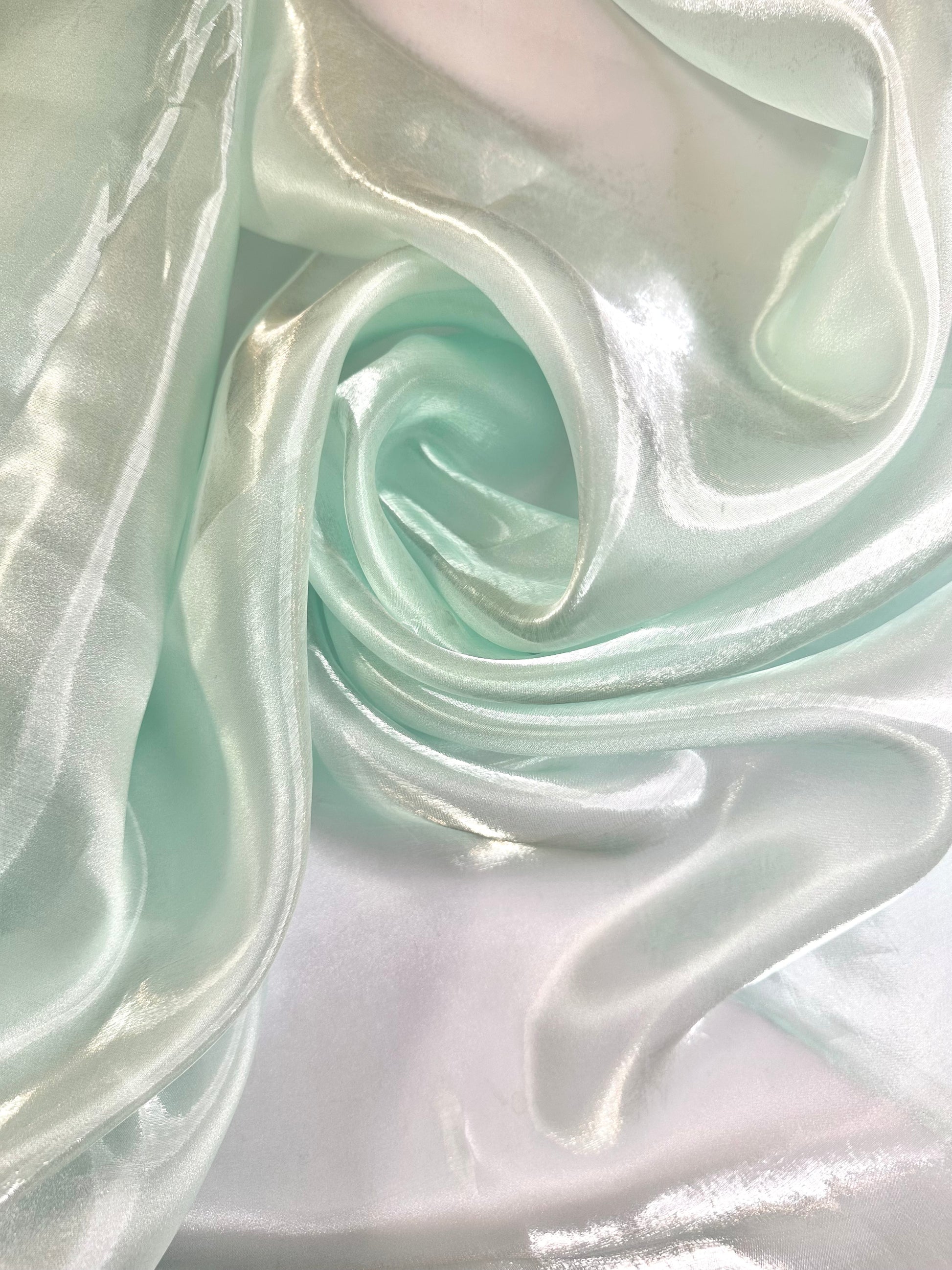 Plongez dans la subtilité de notre organza liquide, ce tissu se distingue par son éclat subtil et sa fluidité incomparable, rappelant la transparence et le reflet scintillant de l'eau.