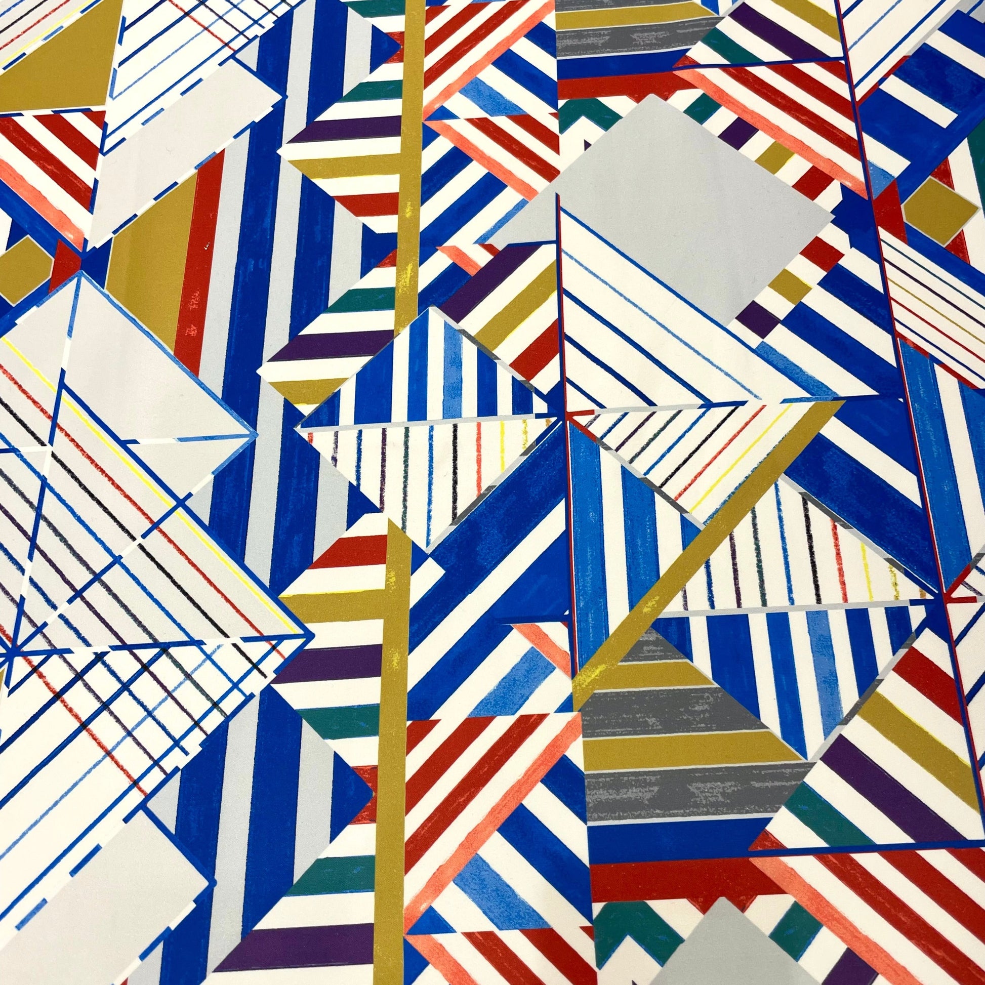DIANA: Satin duchesse acétate imprimé géométrique effet peint main