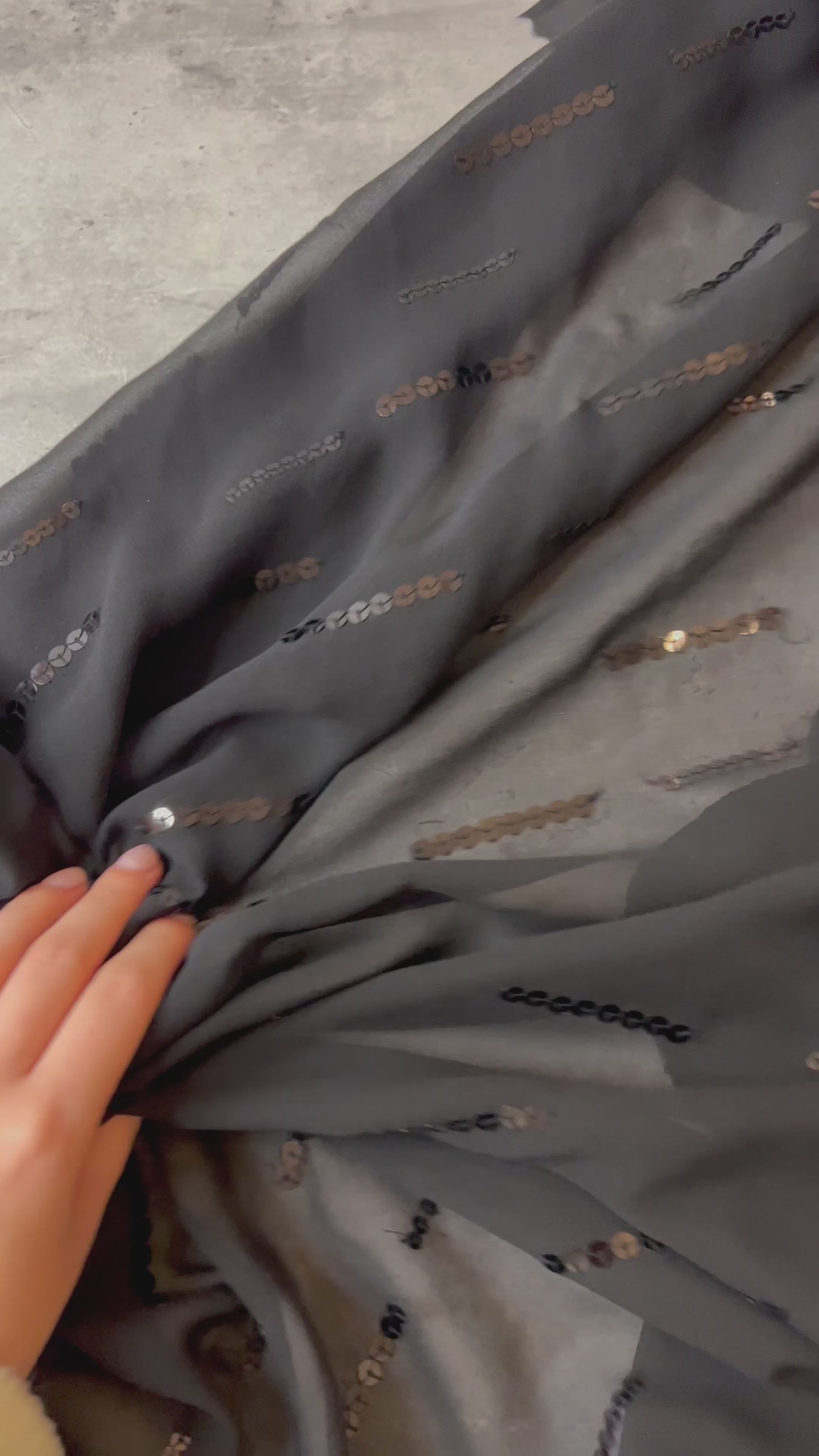 Découvrez l'élégance et la légèreté de notre mousseline polyester noire ornée de délicates paillettes.
