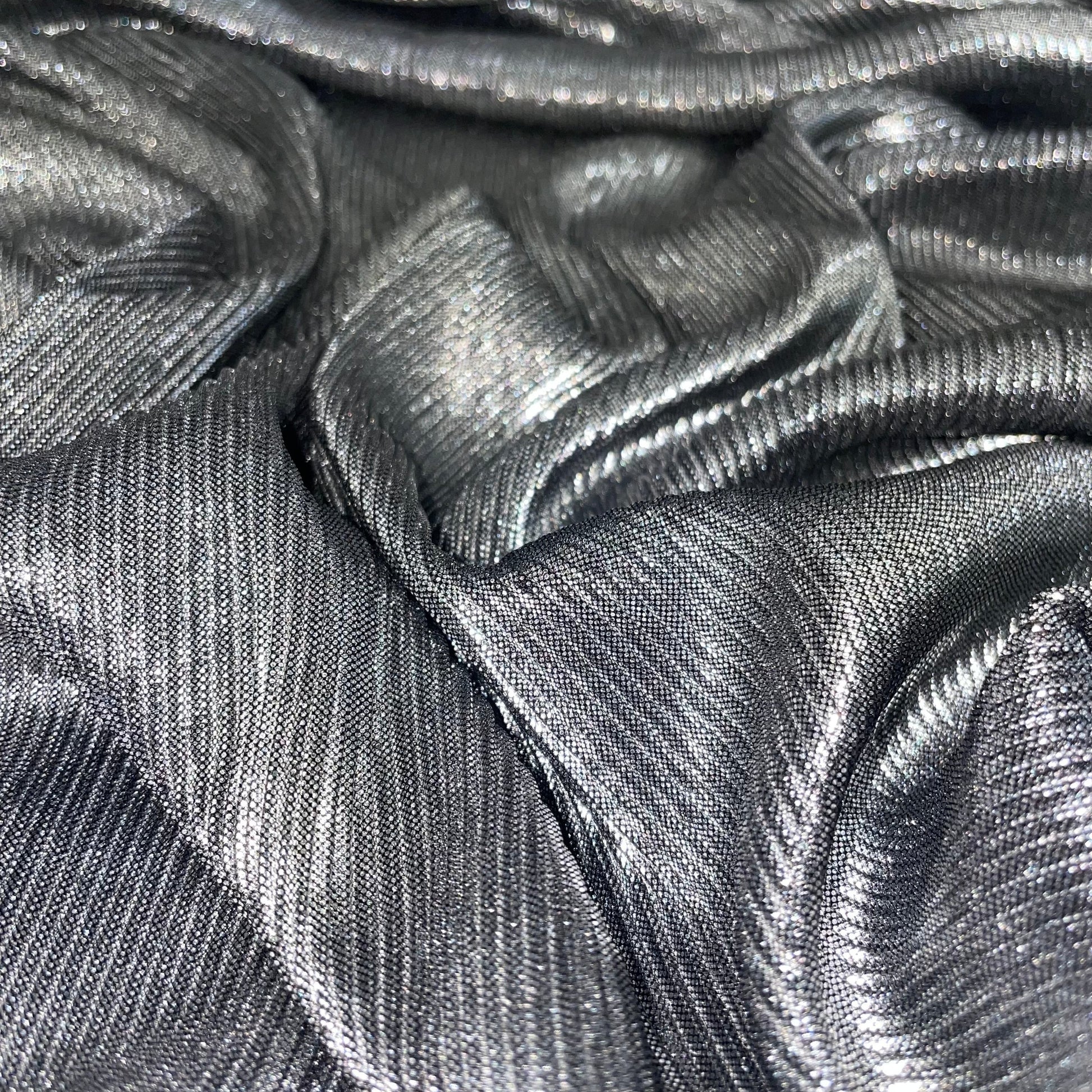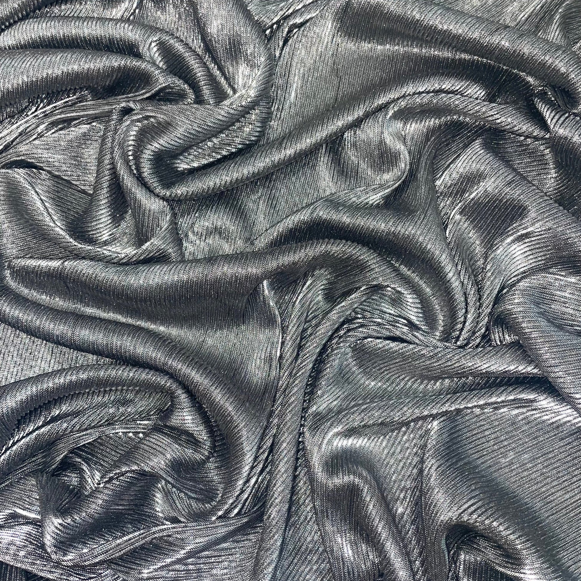 Découvrez notre somptueux tissu en maille côtelé lamé argenté, un choix idéal pour vos projets de couture les plus élégants et sophistiqués.