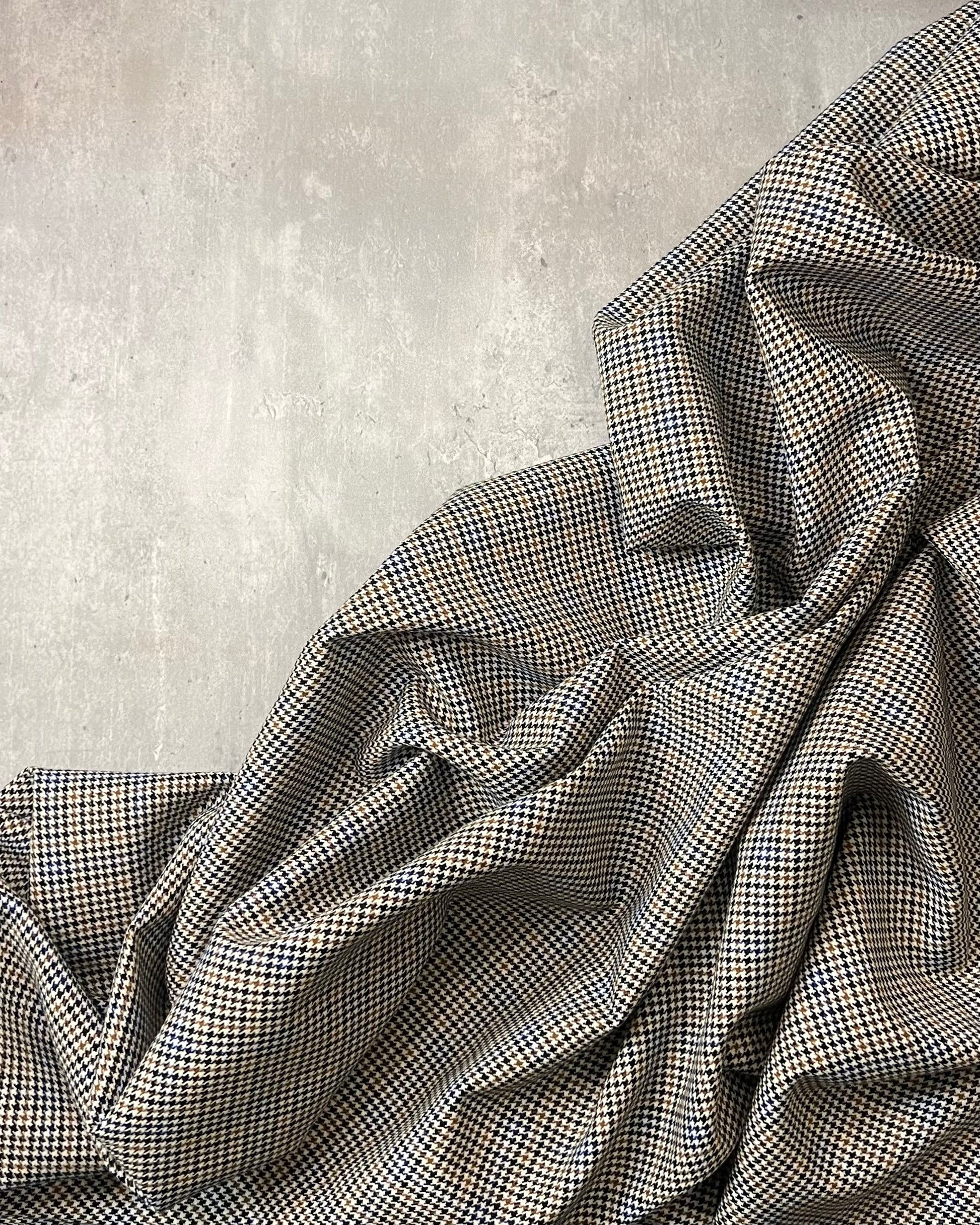 Idéal pour des costumes sur-mesure ou des vestes sophistiquées, il se distingue par son mélange subtil de couleurs neutres et ses détails minutieux.