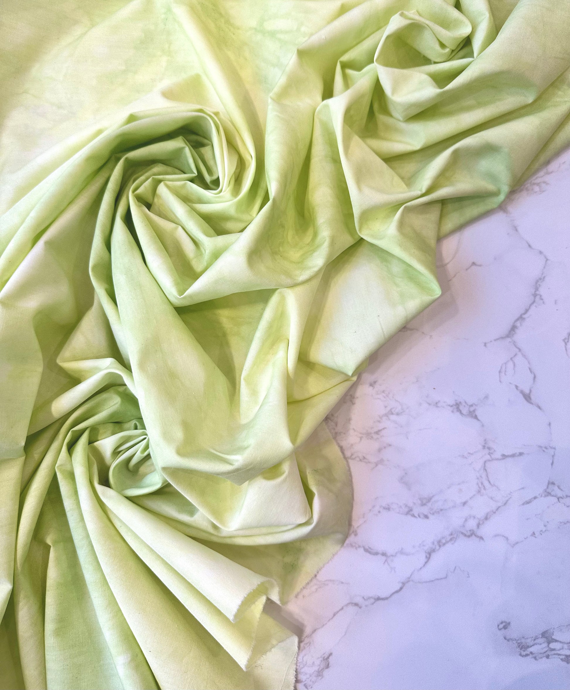 FRANCIS: Popeline de coton française tie and die - nuance vert pomme