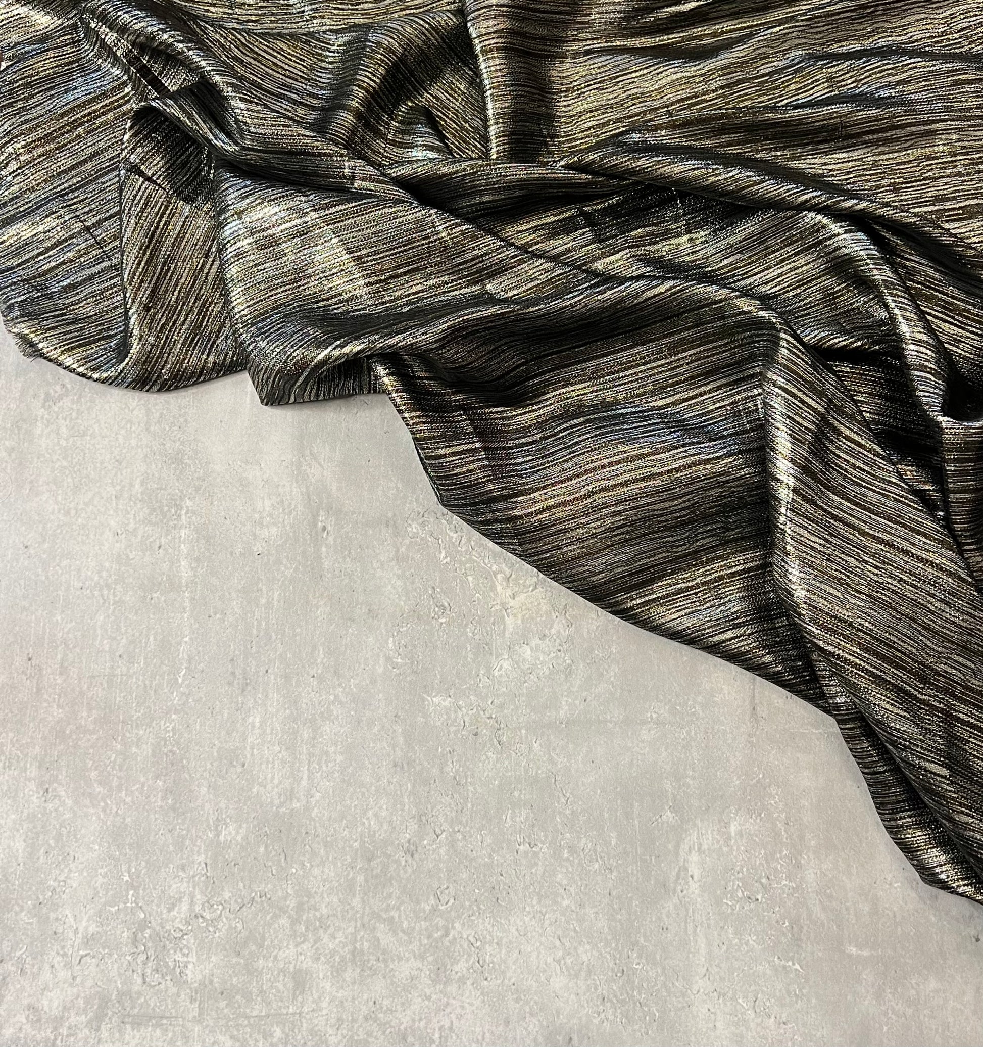 Découvrez nôtre tissus HERMIONE, un luxueux tissu lamé qui capture la lumière de manière captivante grâce à son éclat métallisé subtil.