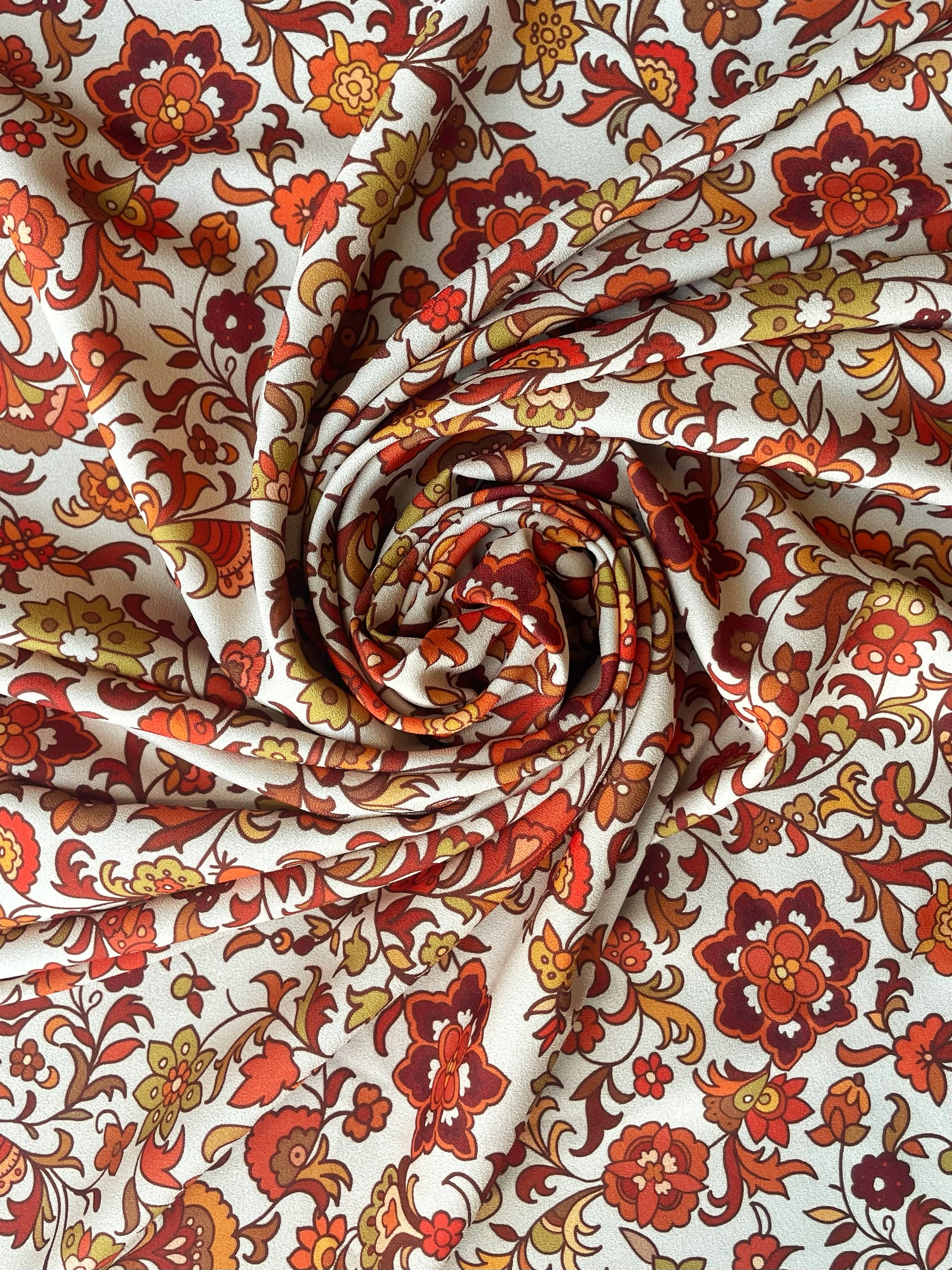 Découvrez notre somptueux crêpe imprimé floral vintage, véritable hommage à l’élégance intemporelle.