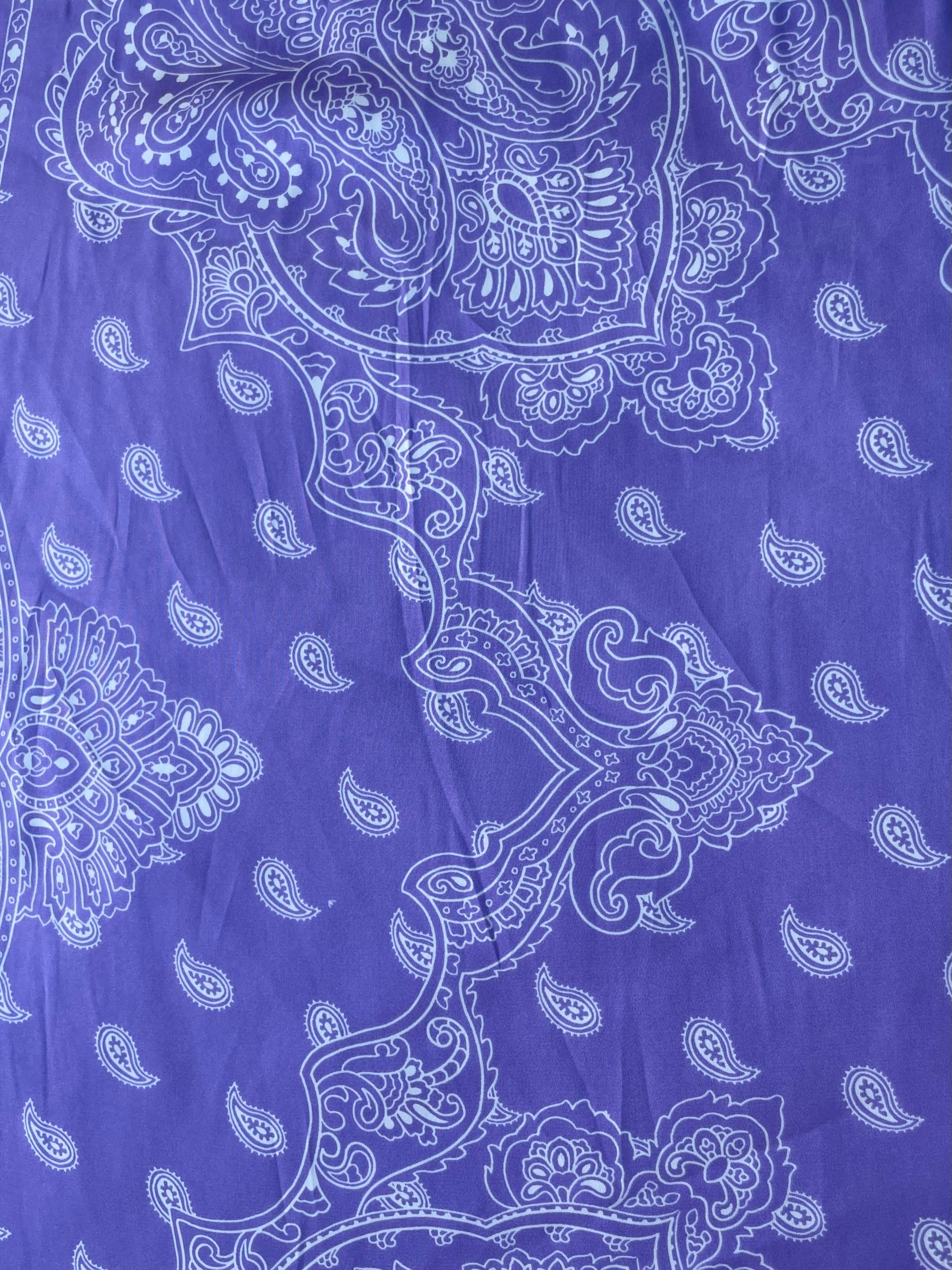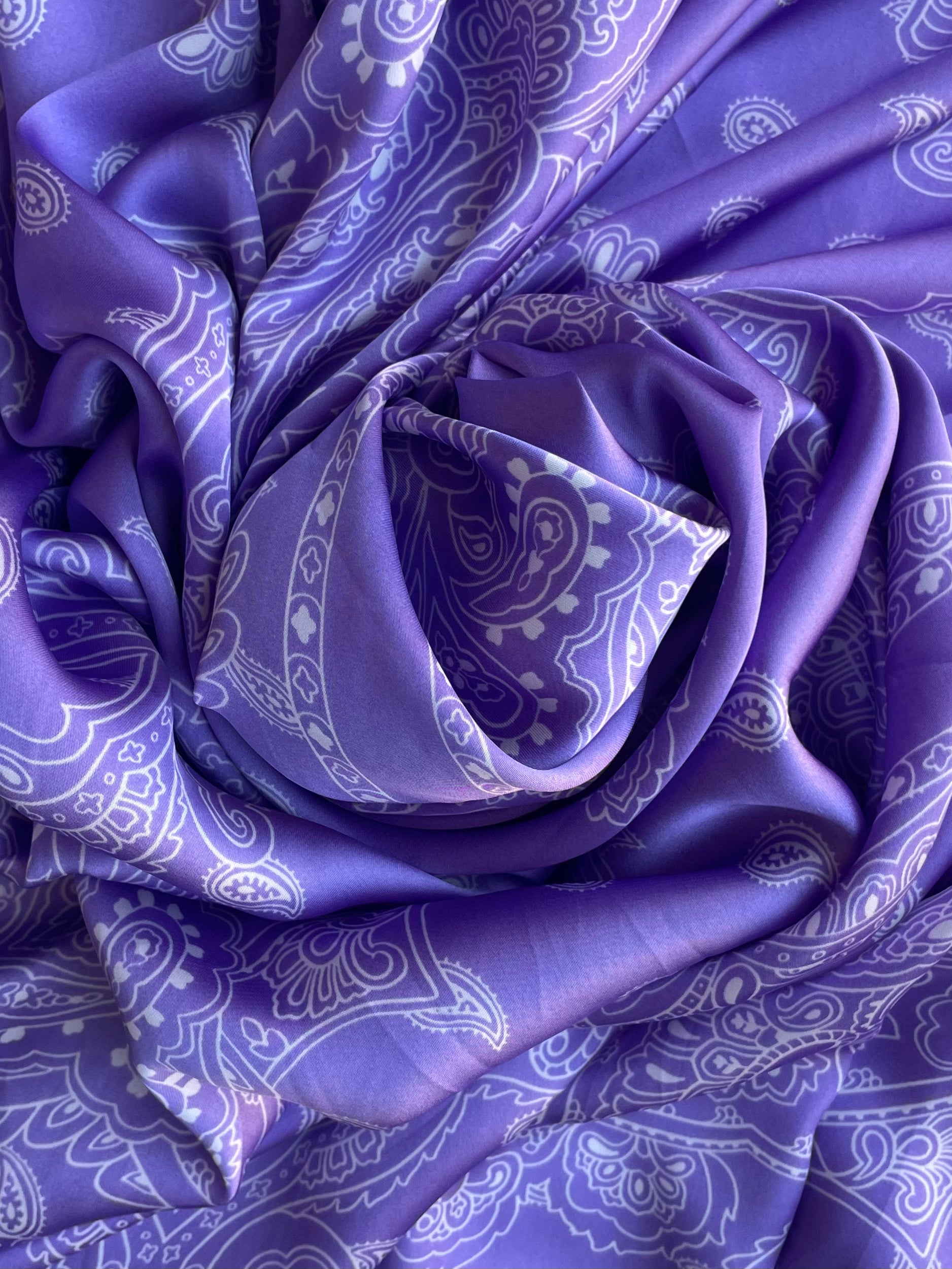 Son imprimé Bandana, riche en détails et en motifs graphiques, apporte caractère et originalité à vos créations, tout en sublimant le brillant naturel du satin. La texture douce et légèrement brillante offre un tombé fluide et élégant, parfait pour des pièces confortables et sophistiquées.