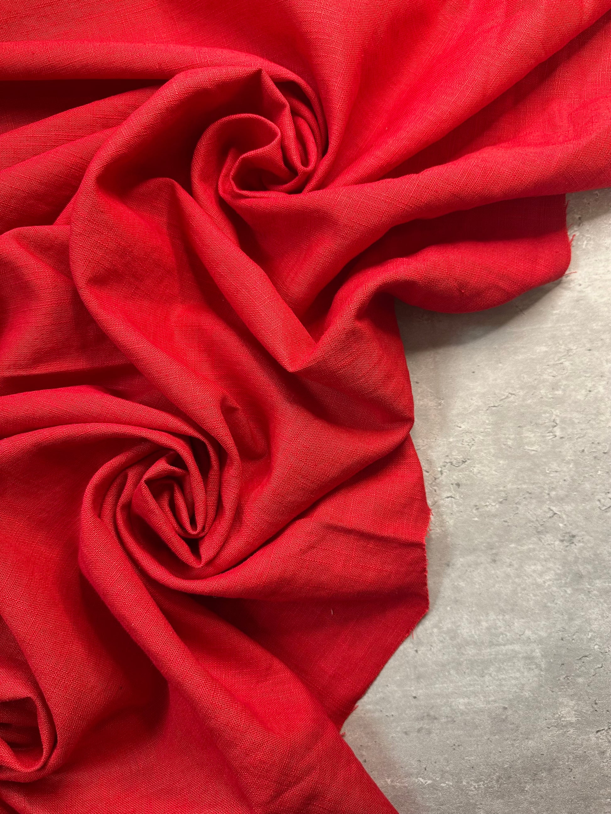 Élégance brute et douceur estivale s’unissent dans ce lin léger rouge vif, une étoffe au charme authentique et intemporel.