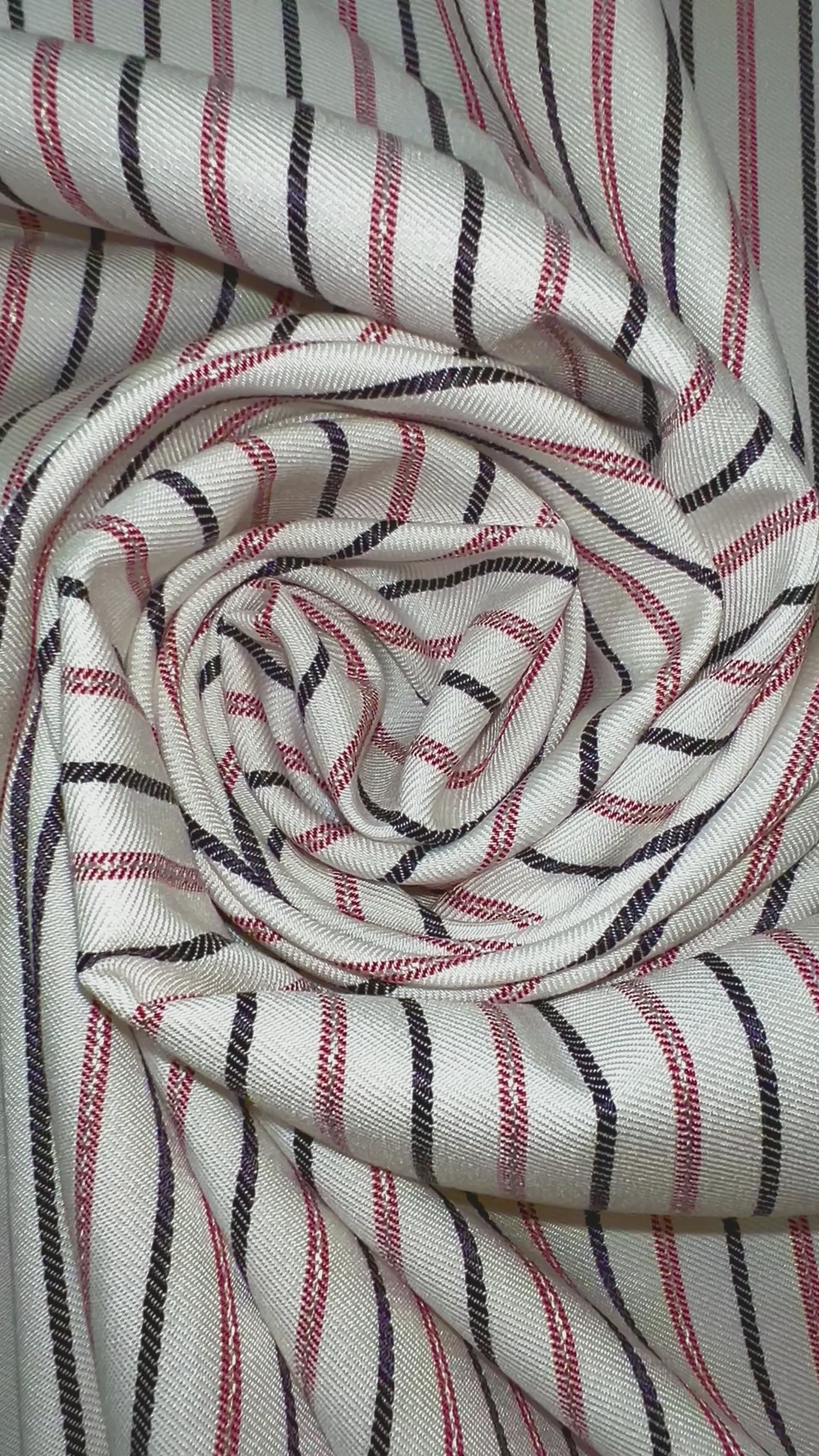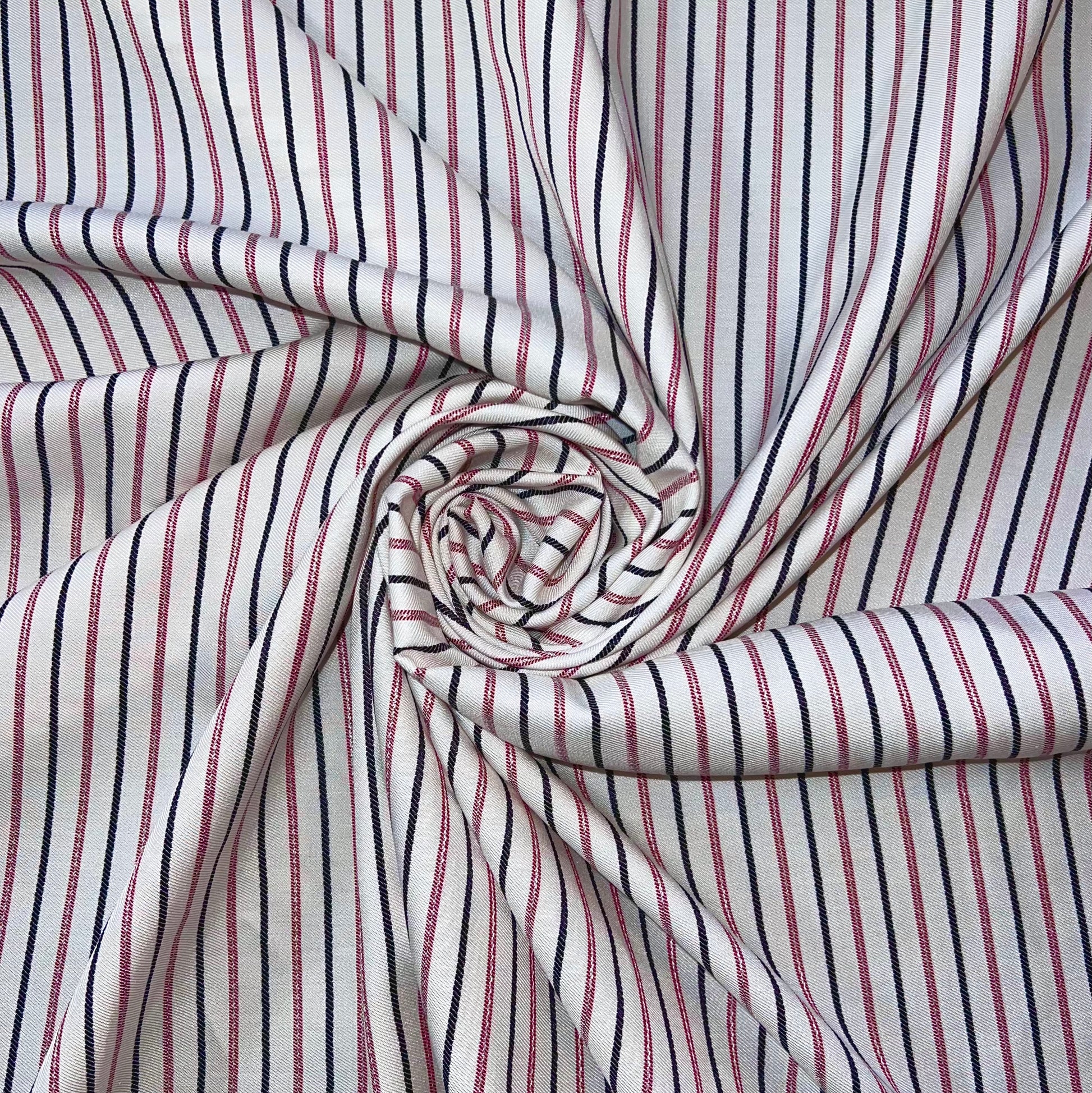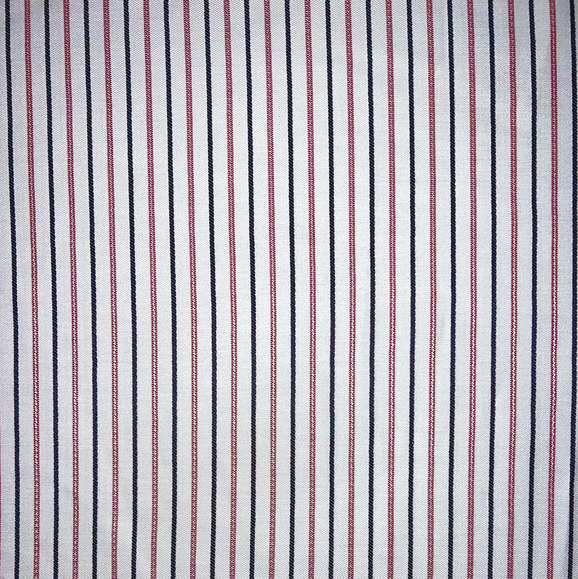 Ce tissu se distingue par ses fines rayures rouges et noires, harmonieusement disposées sur un fond blanc éclatant. Les rayures rouges apportent une note de chaleur et d'énergie, tandis que les rayures noires ajoutent une touche de sophistication et de profondeur, créant un contraste saisissant qui ne manquera pas d'attirer l'œil.