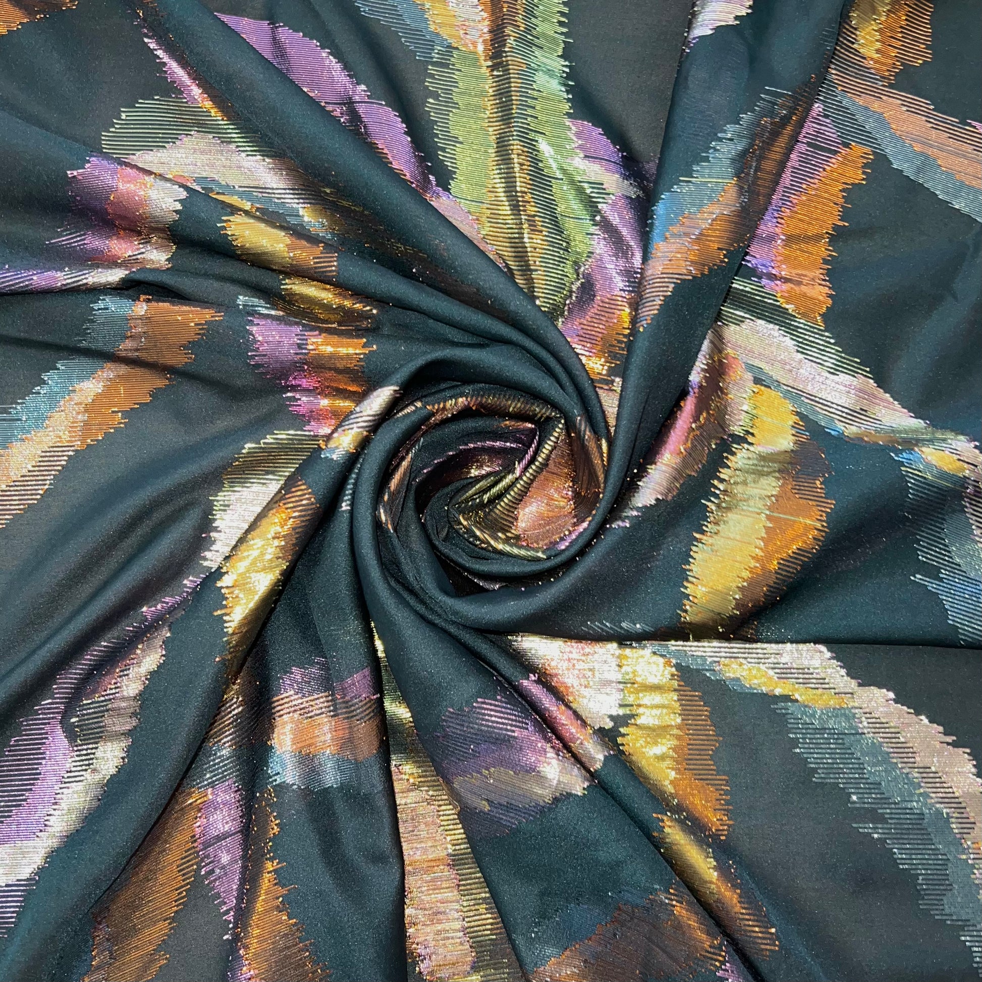 Plongez dans l'élégance et la sophistication avec notre tissu en mousseline noire orné de fils lurex colorés.