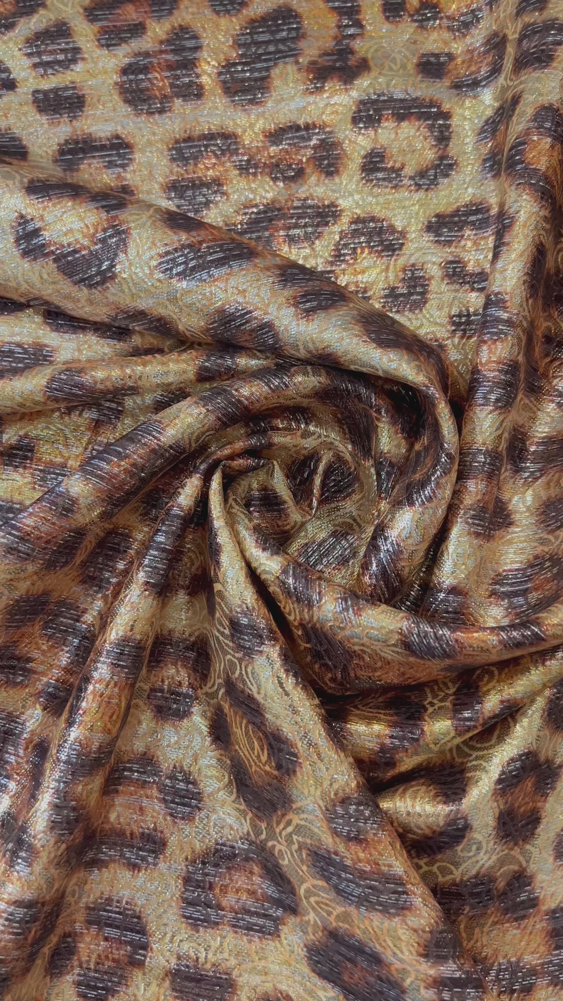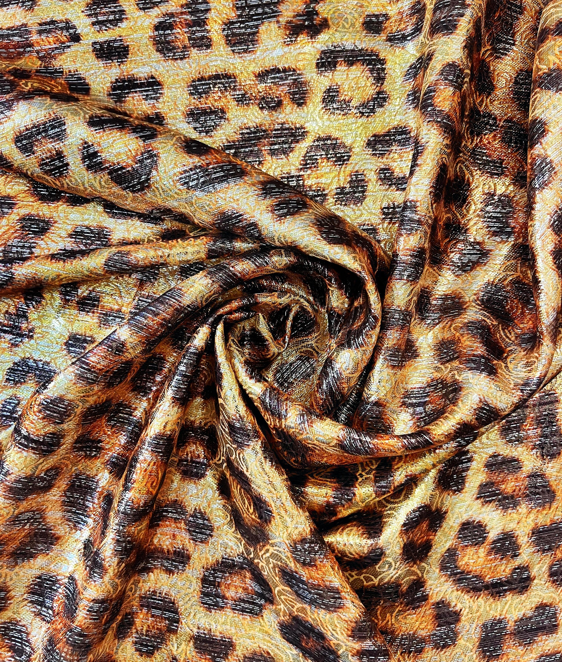 Plongez dans l’univers raffiné et audacieux de nôtre tissus Selvaggia, un tissu lamé somptueusement orné d’un imprimé léopard.