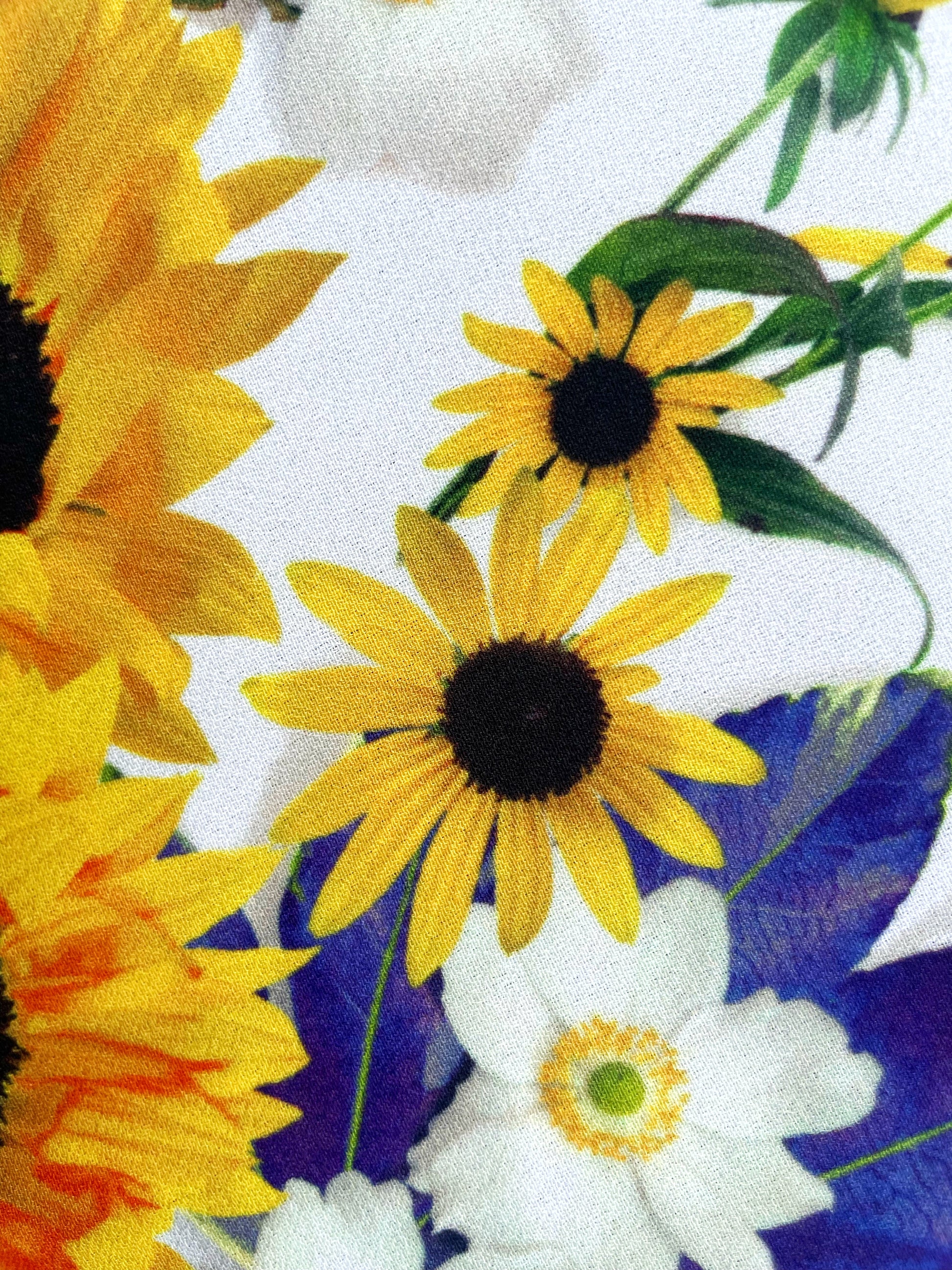 Ses motifs de tournesols éclatants apportent une touche de gaieté et de charme à vos créations, créant un jeu visuel vibrant et harmonieux. La fluidité du crêpe offre un tombé léger et élégant, parfait pour des pièces confortables et stylées.