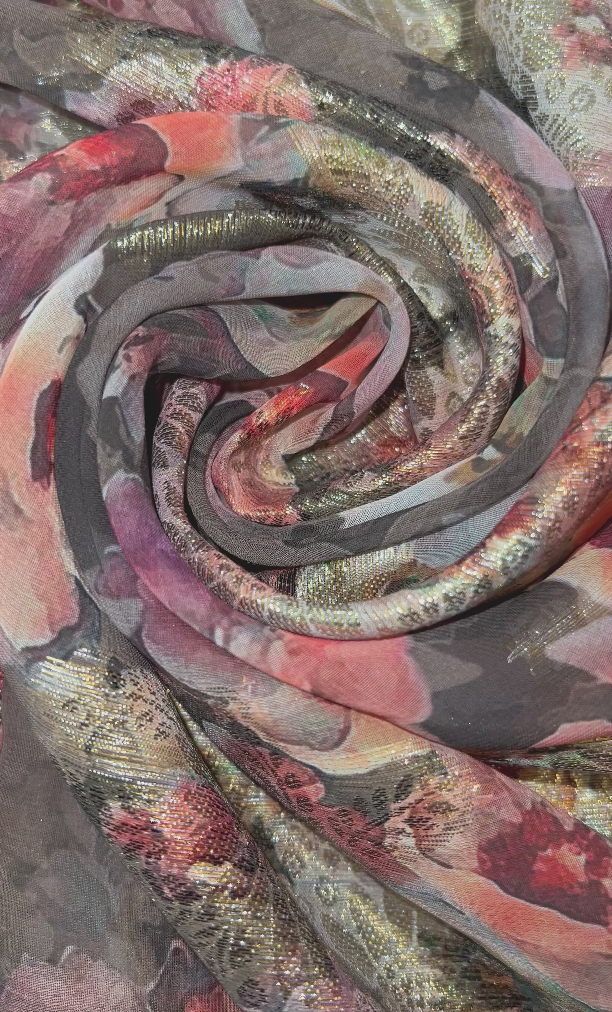 SOPHIE: Tissu mousseline à motif floral orné de lurex