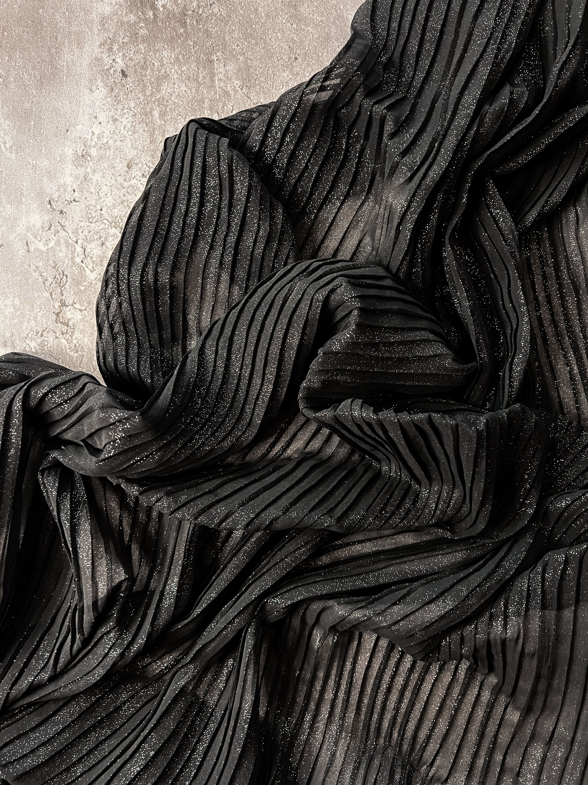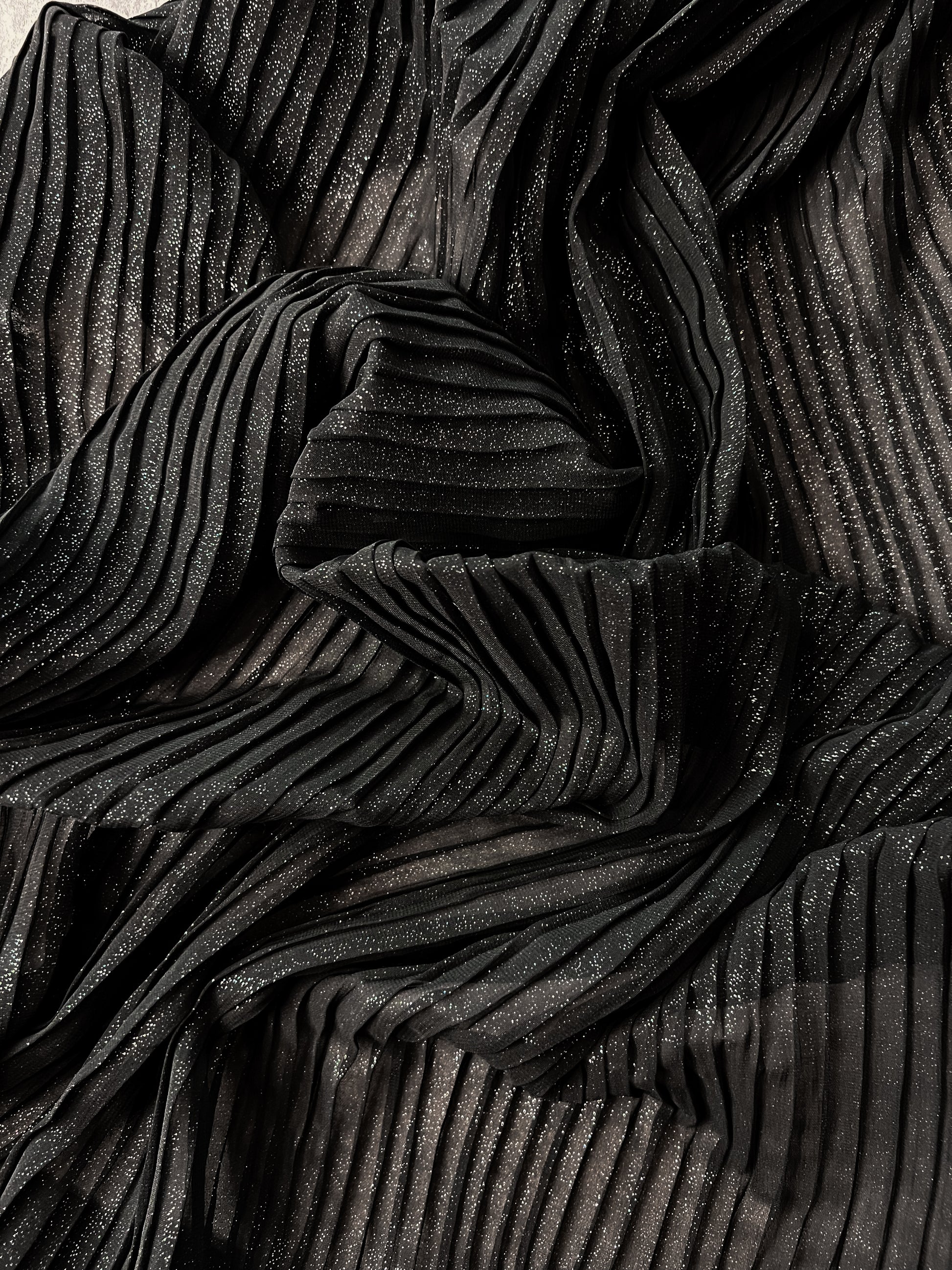Découvrez notre somptueux tissu plissé en polyester, alliant légèreté et élégance.
