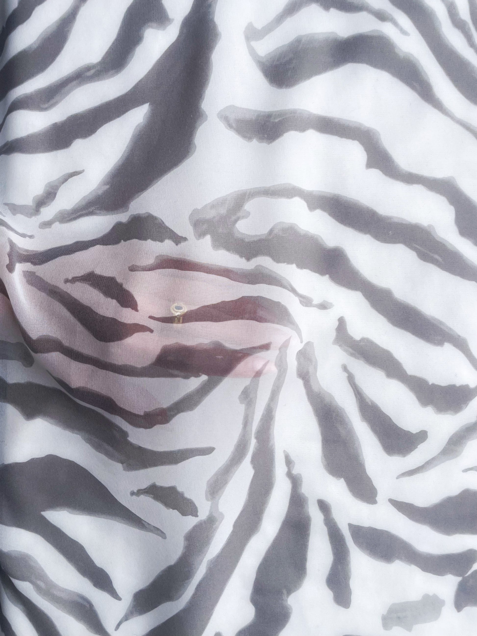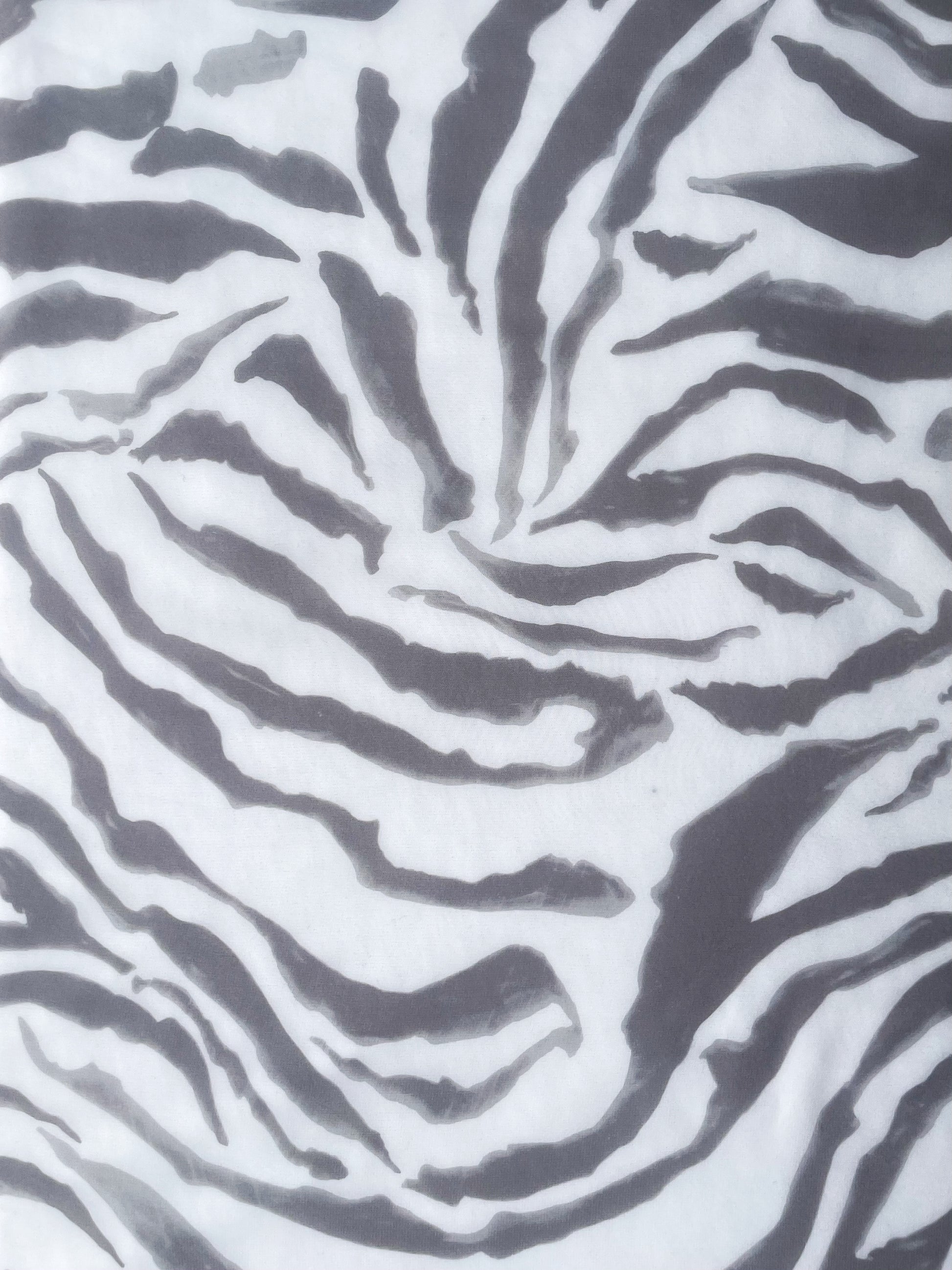 Son imprimé zèbre graphique crée un jeu visuel audacieux et raffiné, apportant caractère et style à vos créations. La légèreté du voile offre un tombé aérien et fluide, idéal pour des pièces confortables et élégantes.