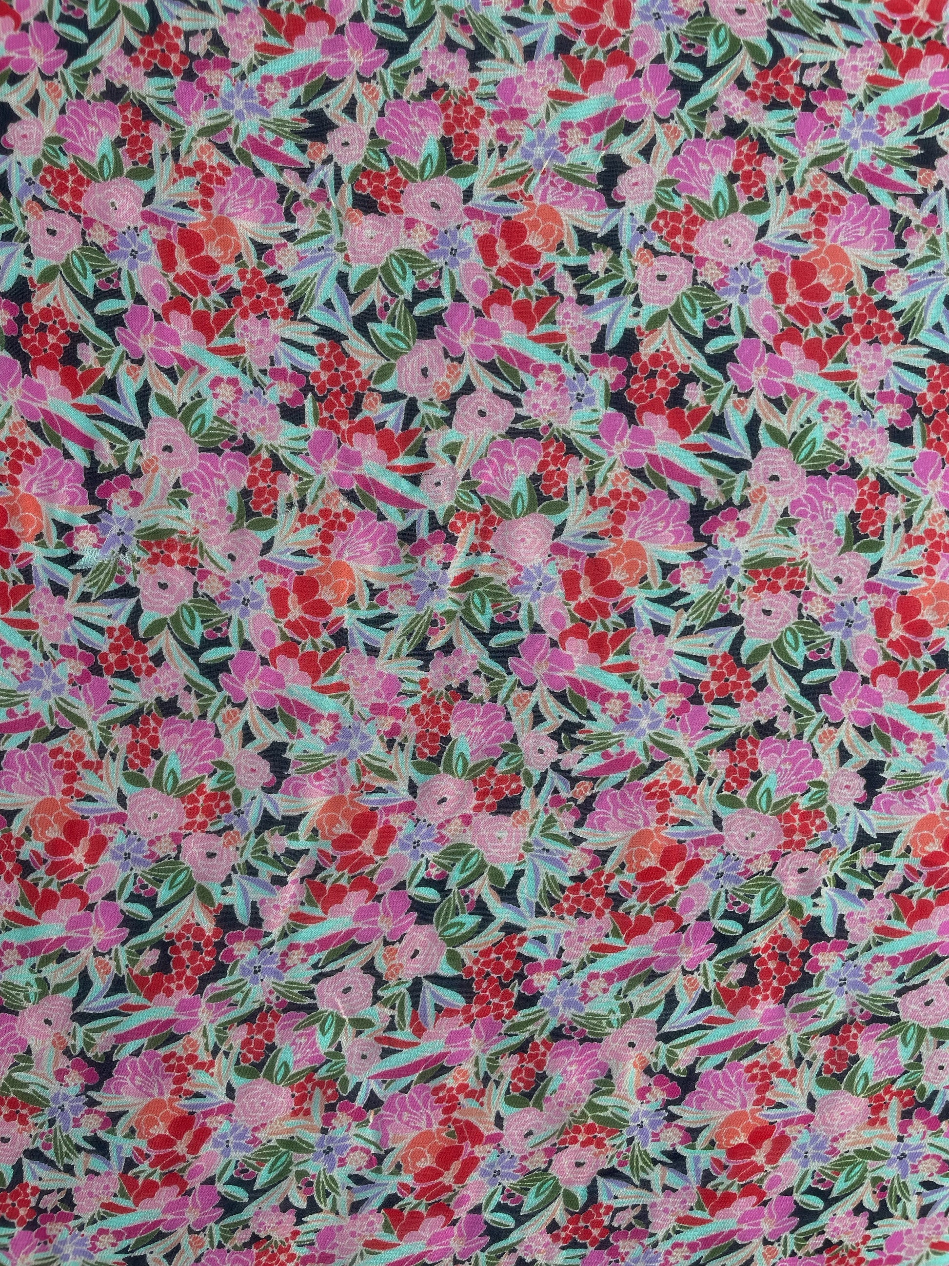Parfait pour des robes, blouses, jupes ou accessoires, ce tissu floral insuffle douceur, fraîcheur et poésie à toutes vos réalisations.