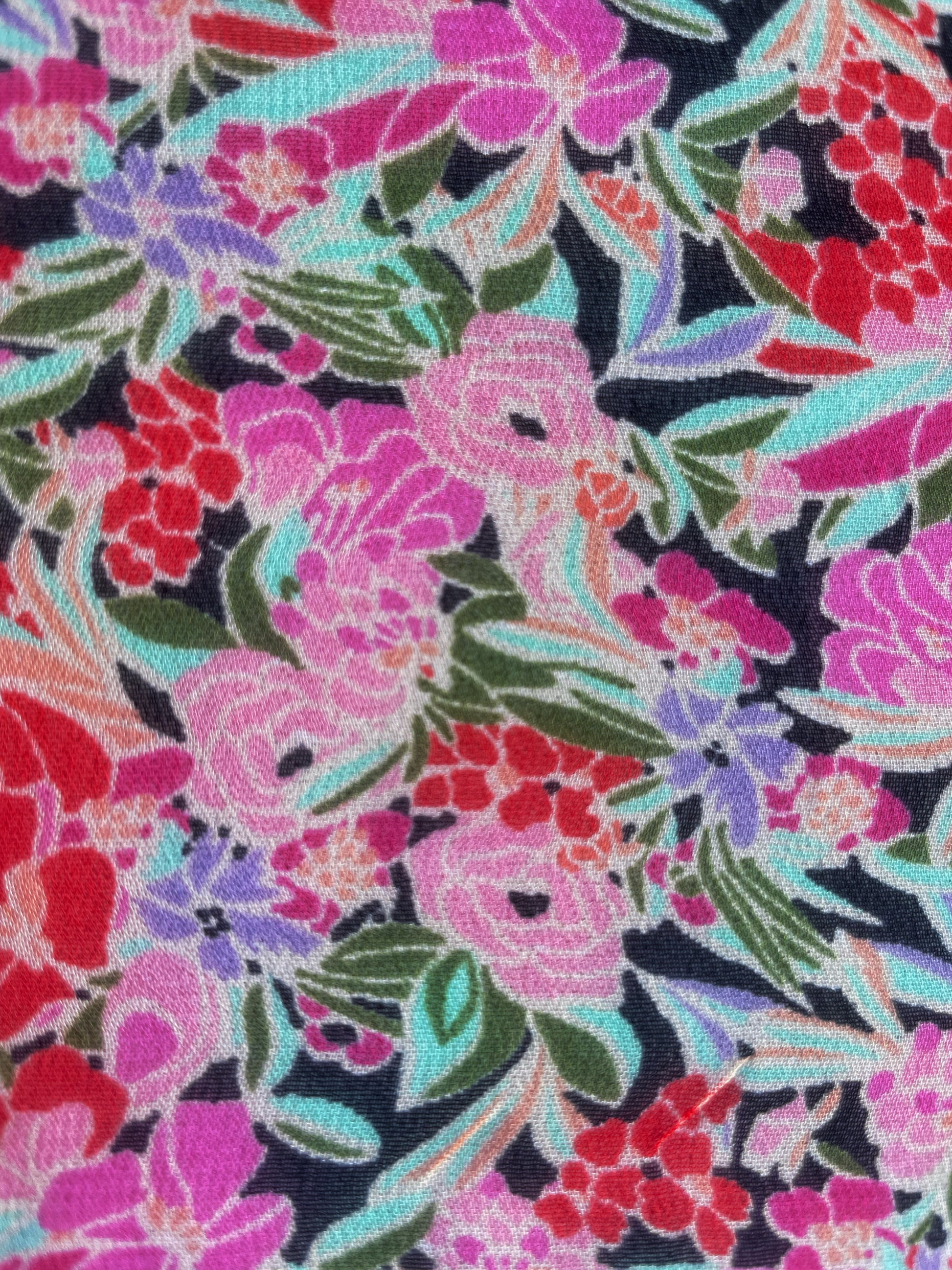 Découvrez notre somptueux voile de coton viscose imprimé floral, véritable invitation à légèreté et élégance.