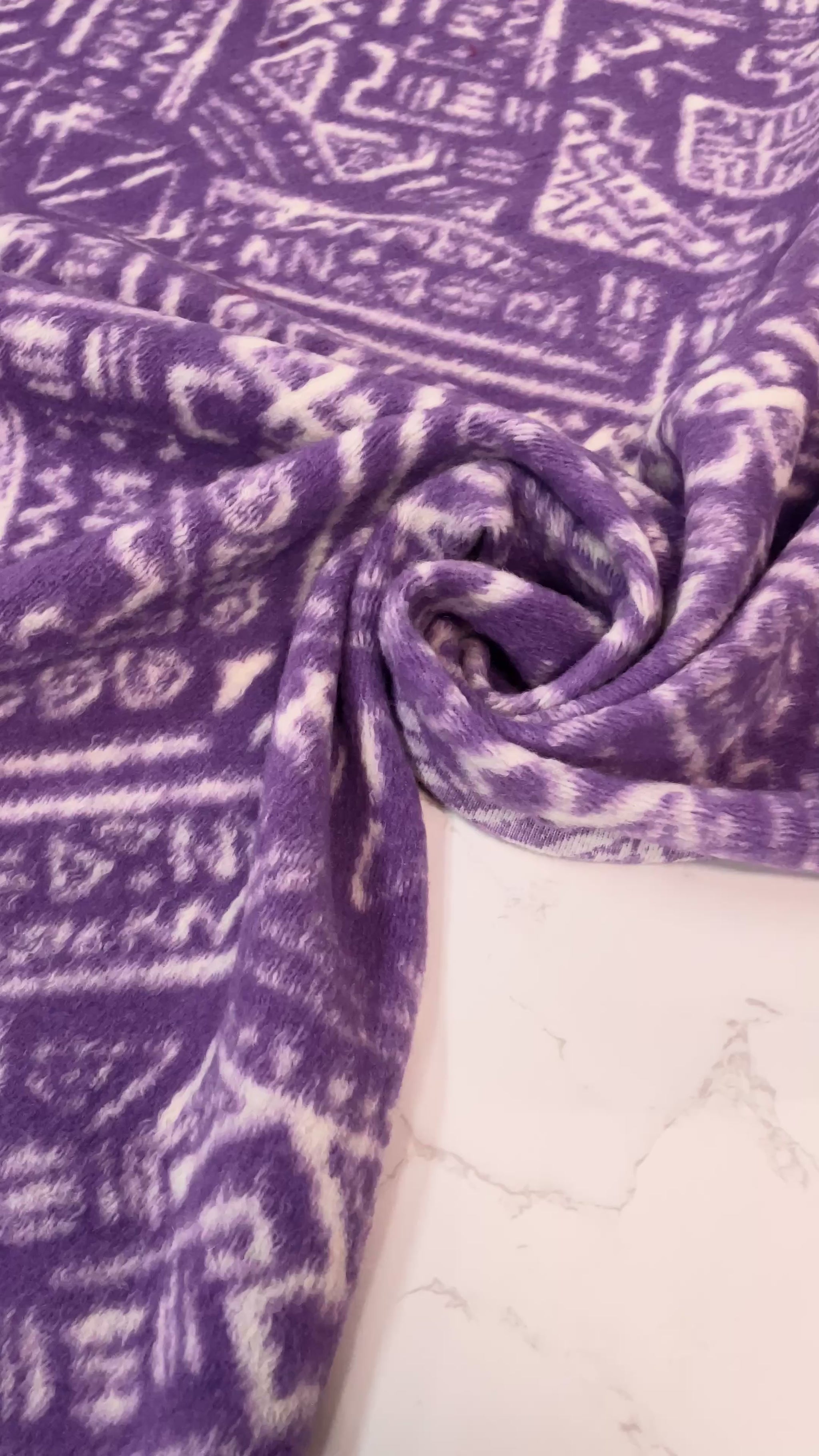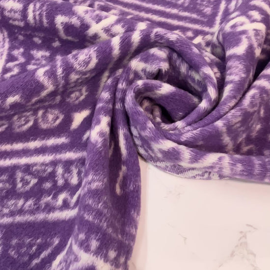 Apportez style et originalité à vos créations avec ce magnifique lainage imprimé aux motifs géométriques dans des tons violets et crème. Composé de laine 96% de laine et 4% d Elasthanne ce tissu est à la fois chaud, respirant et résistant, idéal pour la saison automne-hiver.