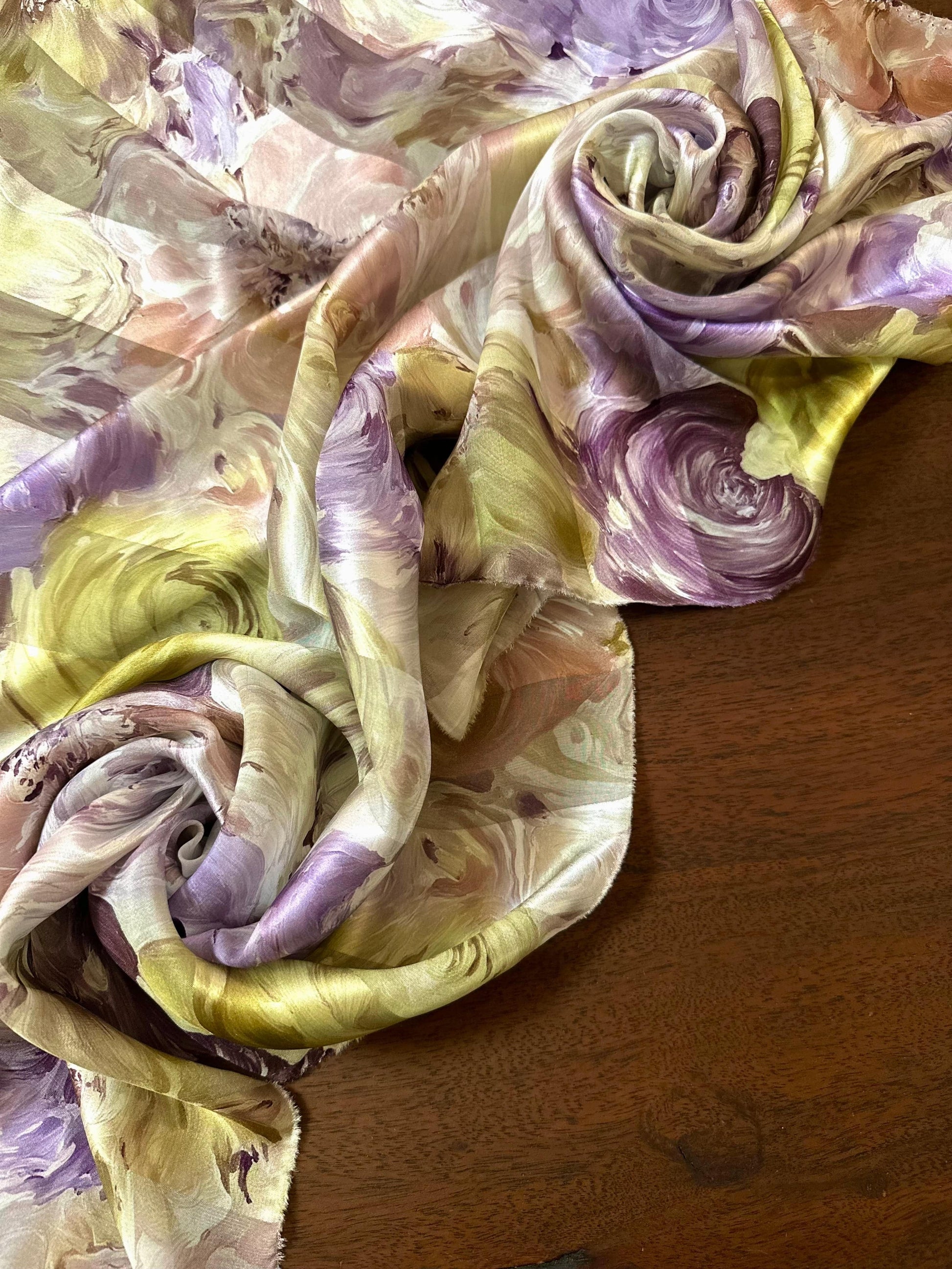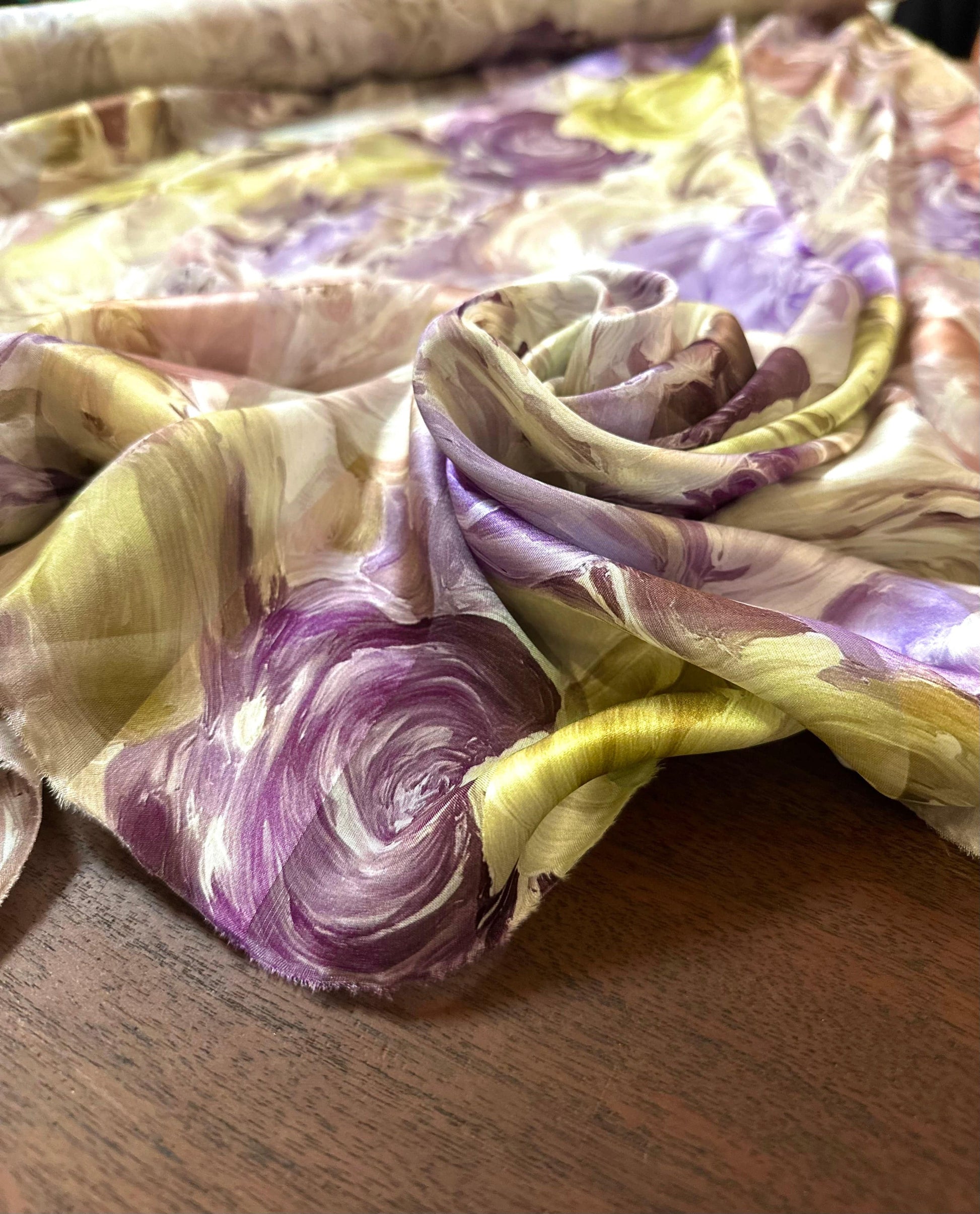 Sublimez vos créations avec cette étoffe d'exception, un véritable tableau de maître tissé en 100% soie naturelle. D'une douceur incomparable, cette soie légère de 53,57 g/m² offre un tombé fluide et aérien, idéal pour des pièces uniques et raffinées.