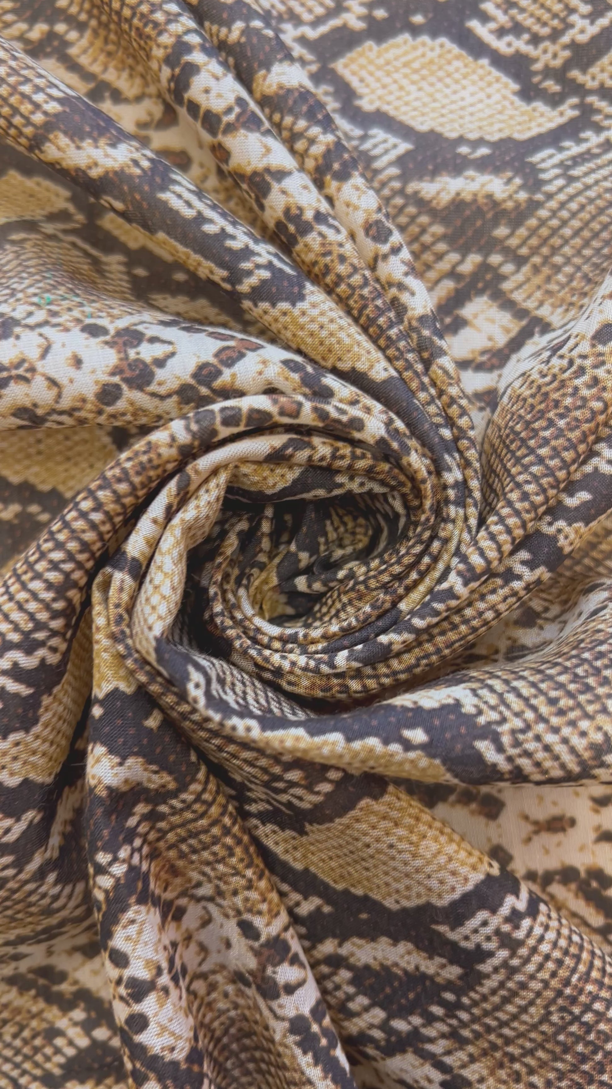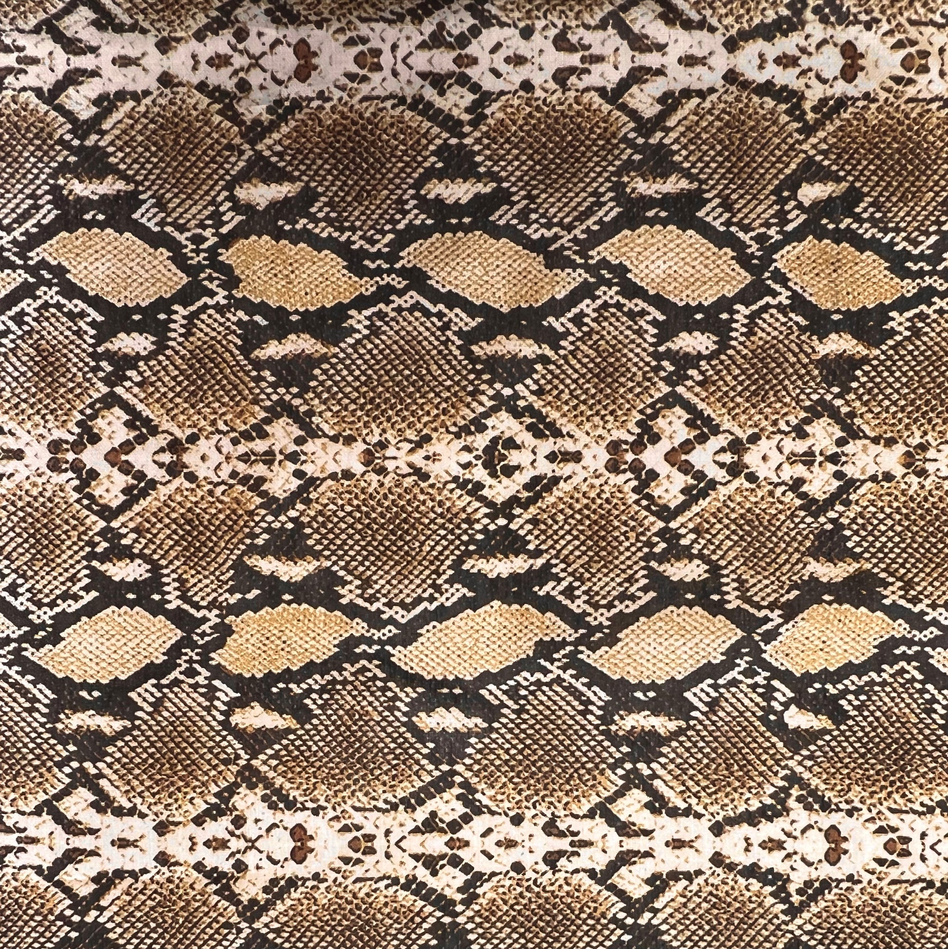Le motif python est un hommage à la nature sauvage, avec une palette de couleurs sophistiquées allant des nuances de beige doré aux tons profonds de brun et de noir. Les détails du motif sont finement travaillés, créant une illusion de texture en relief qui capte la lumière de manière sublime