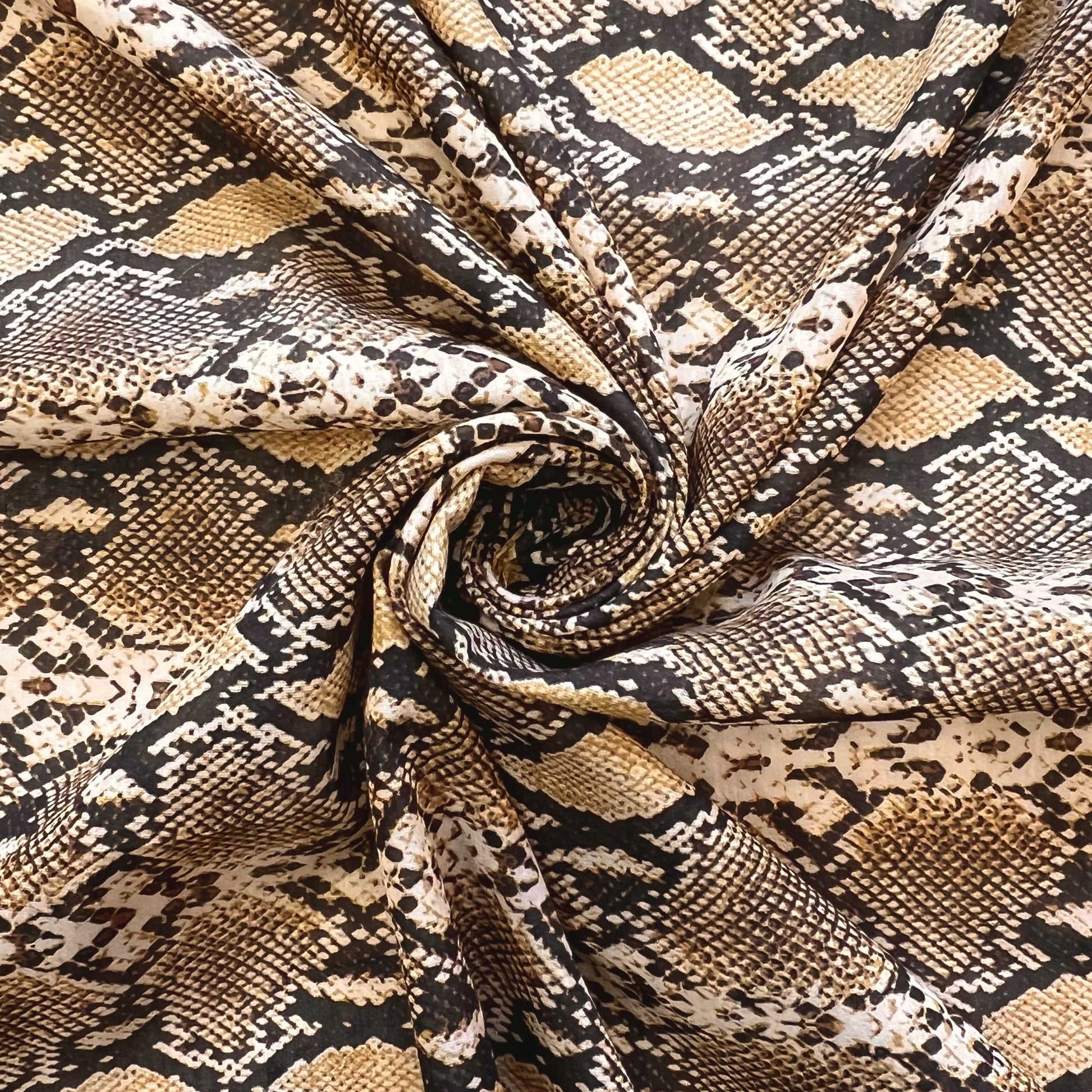 Découvrez l'élégance intemporelle et l'exotisme du tissu en coton et soie, sublimé par un motif python saisissant. Ce tissu de haute qualité est le fruit d'une fusion parfaite entre la douceur naturelle du coton et la délicatesse luxueuse de la soie, offrant ainsi un toucher soyeux et un confort inégalé.