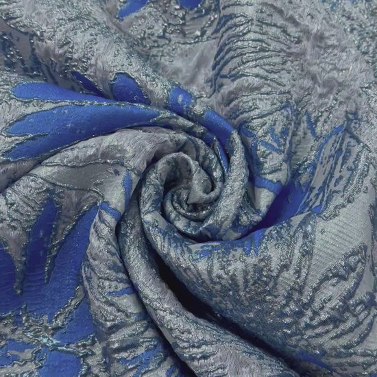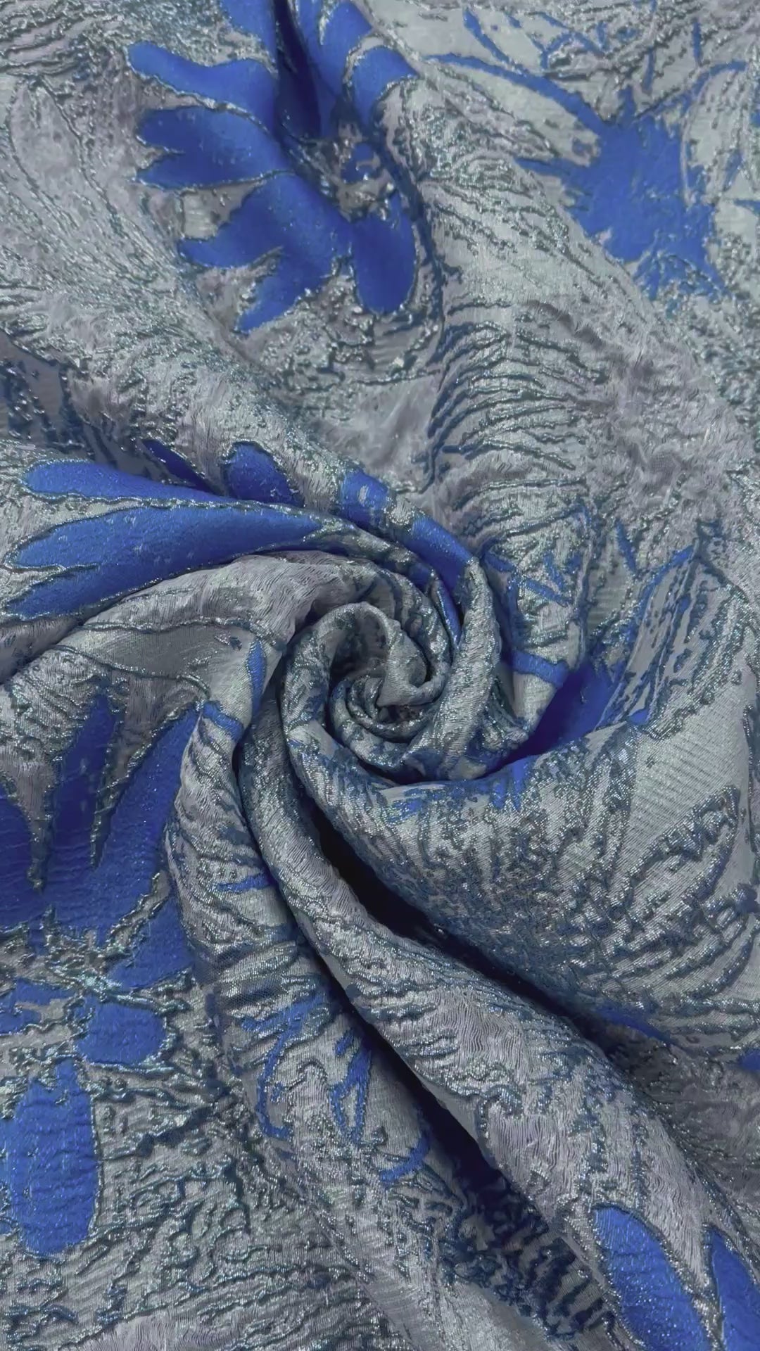 Laisse-toi emporter par ce brocard couture où les motifs floraux se tissent en nuances de bleu profond et de gris élégant. Le jeu de fils crée un relief subtil, presque sculpté : le bleu apporte sa profondeur, le gris son raffinement, et l’ensemble révèle une étoffe sophistiquée, lumineuse avec retenue. C’est un tissu qui respire la classe, celui qui attire les regards sans jamais crier.