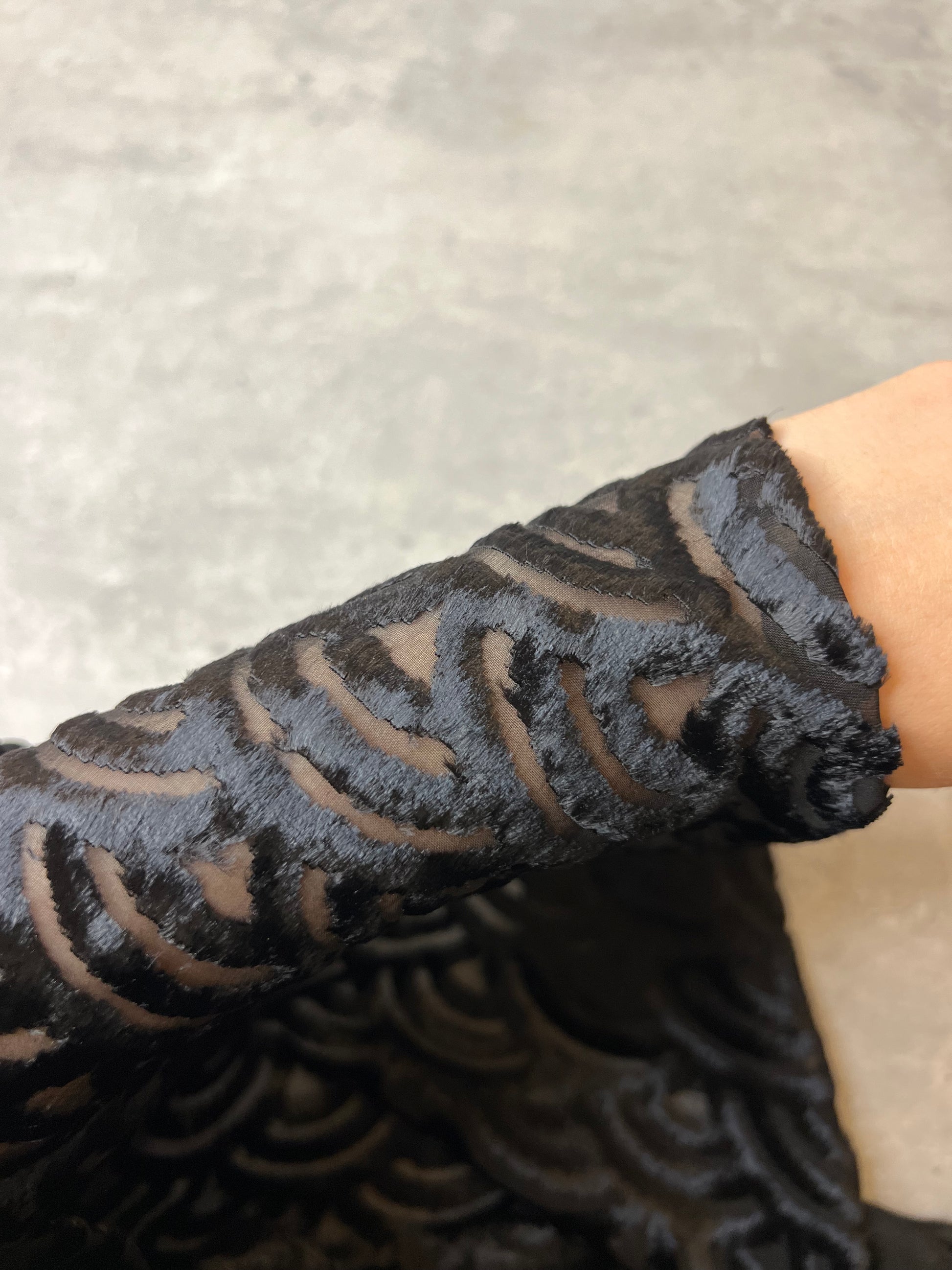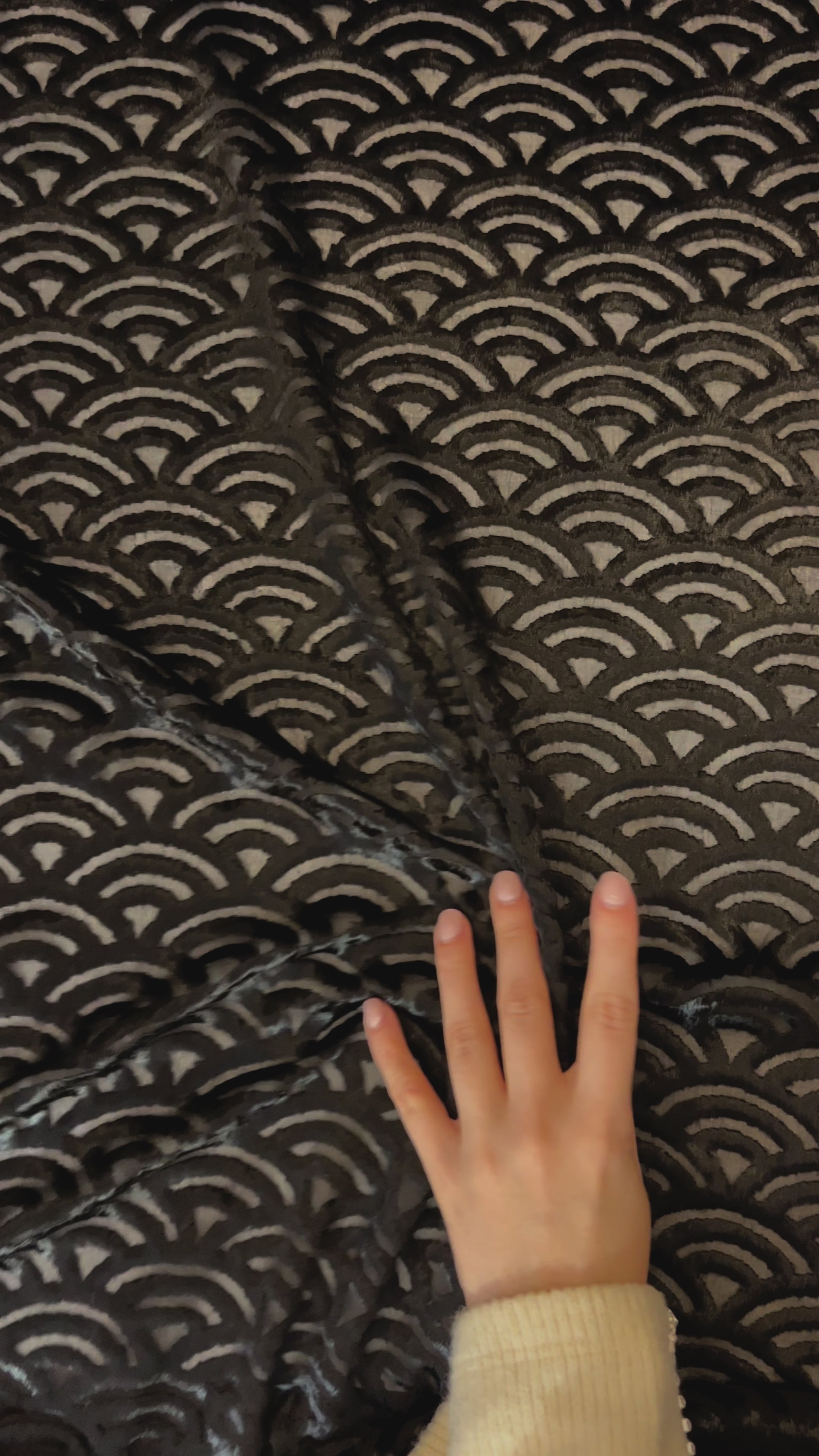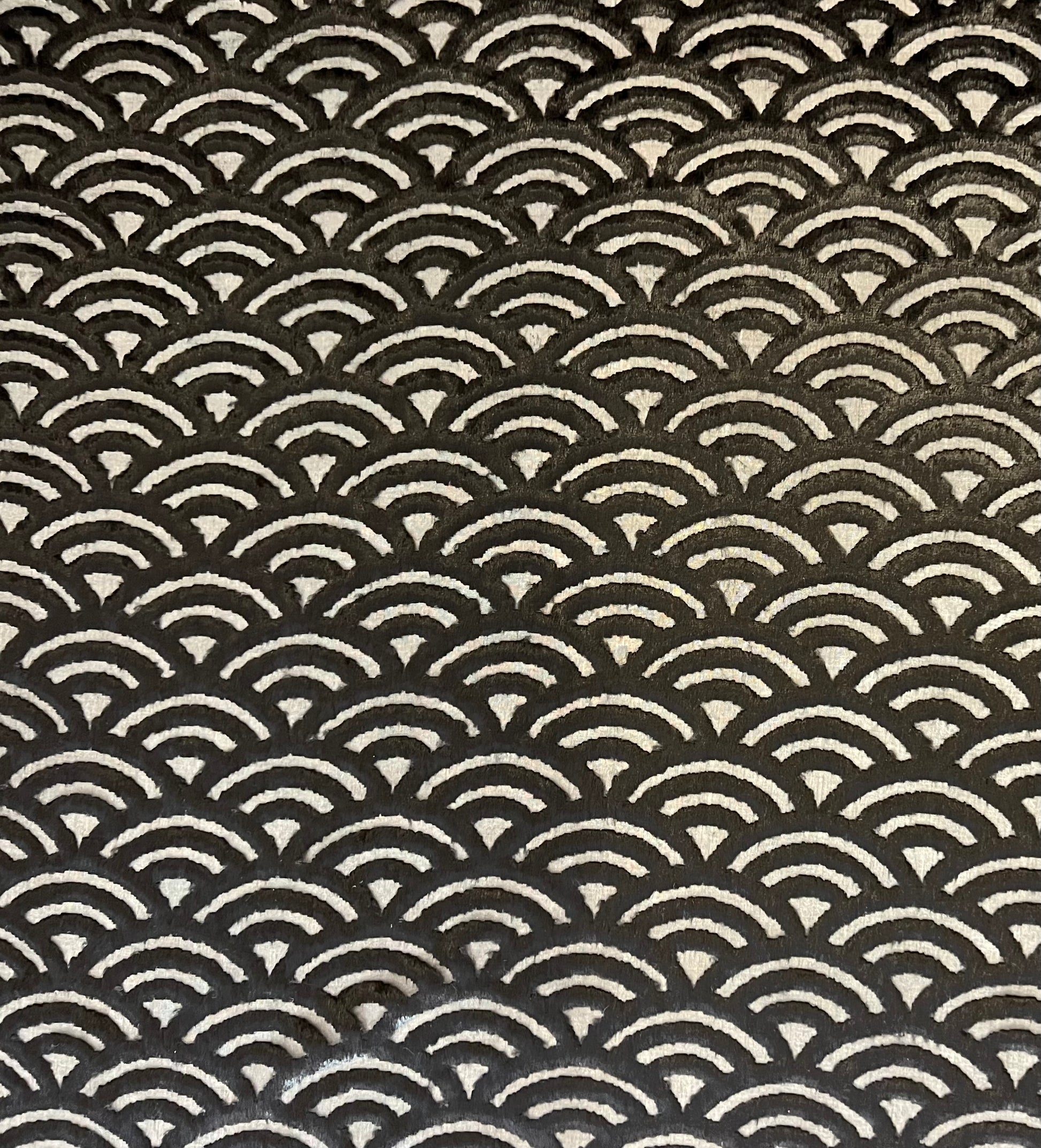 Découvrez notre tissu en Velour dévore “ Arena”, élégant et orné du motif traditionnel japonais Seigaiha, symbole de sérénité et d'harmonie.