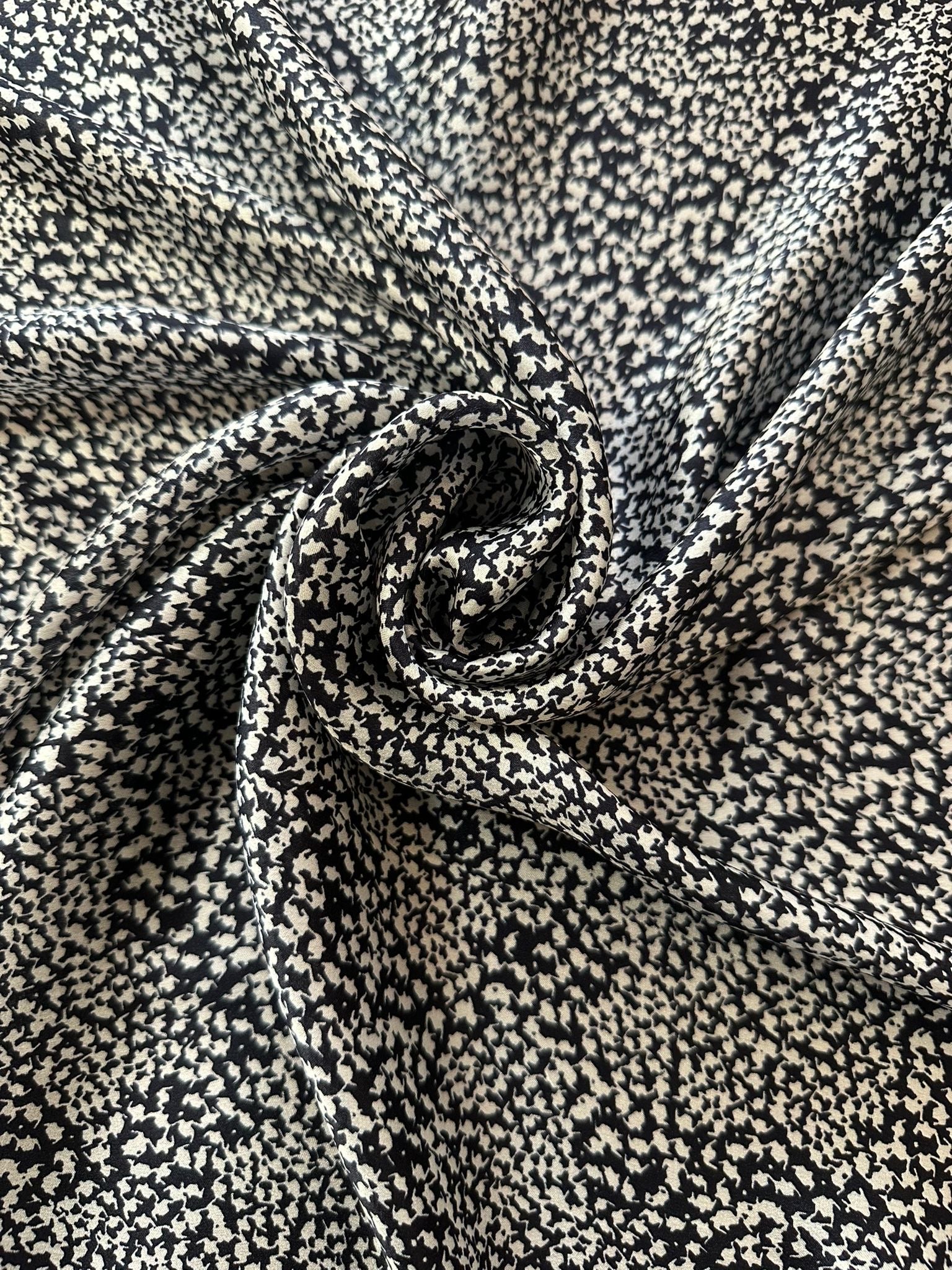 Découvrez notre crêpe imprimé noir et écru, un tissu élégant et fluide qui séduit par son tombé naturel et son toucher légèrement grainé. Son motif discret façon taches abstraites apporte une touche moderne et intemporelle à vos créations, parfait pour celles et ceux qui recherchent un tissu facile à porter au quotidien comme pour des pièces plus habillées.
